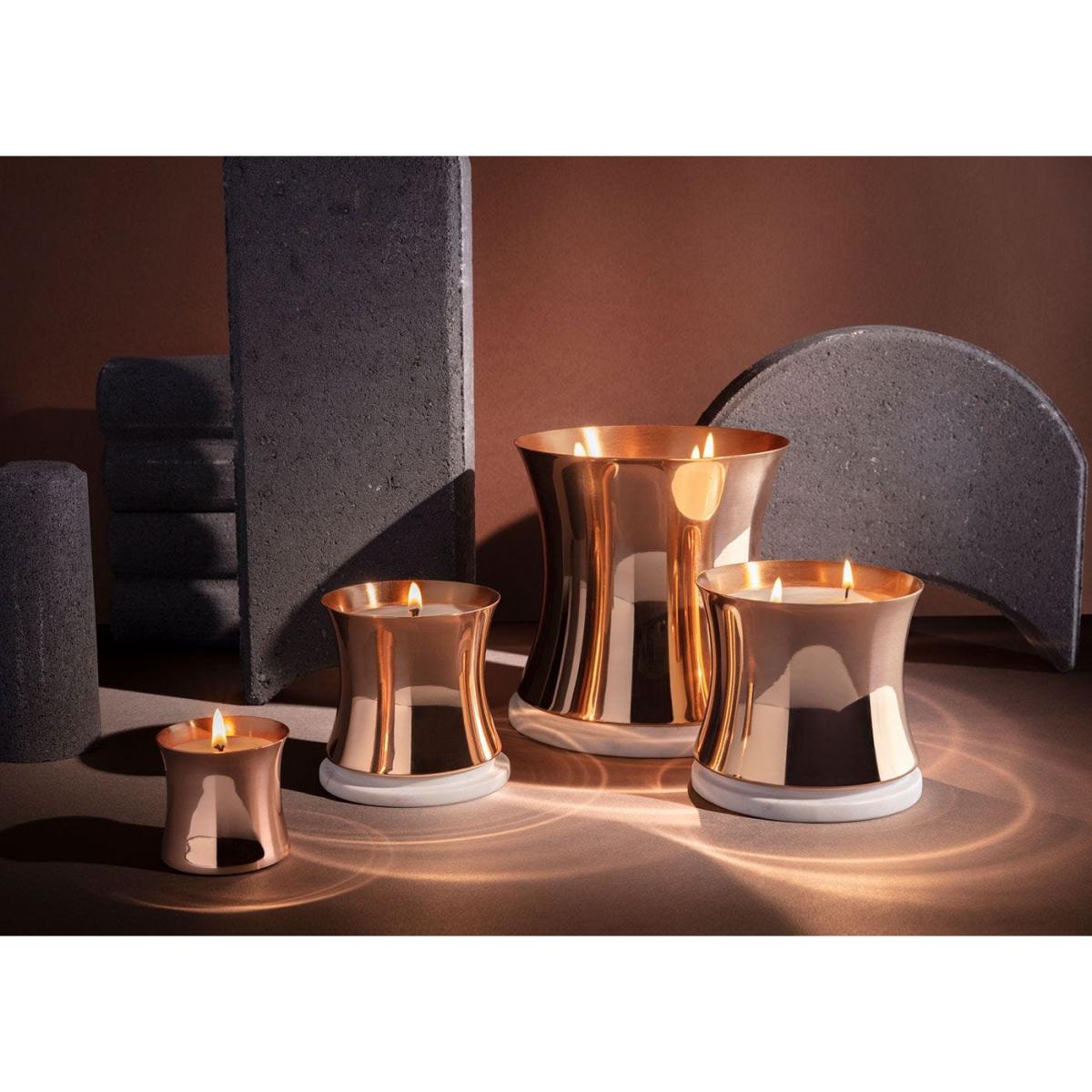 London; a melting pot of colours, cultures, and styles. From King’s Cross to Dagenham, Eclectic London captures the spirit of Tom Dixon’s home city. The woody smell of red brick and London parks with crocuses and nettles can be detected in this scent. This candle is encased in a hand-spun copper vessel with a white marble lid which is designed with the intention for a second life - to be reused as a contemporary home accessory that lasts a lifetime.