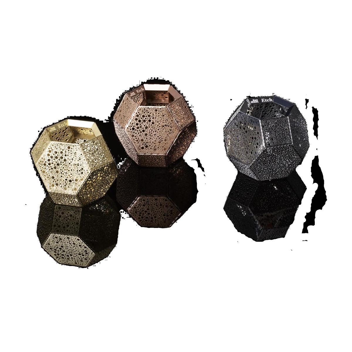 The Etch lantern dot from Tom Dixon is a beautiful tealight holder from the same series as the pendant lamp in the same style. The Etch lantern dot utilizes the same high-tech high-precision manufacturing techniques as the pendant lamp, but rather than using the classic box pattern, it renders the design with a series of small round holes. The candle holder casts a soft and atmospheric shine while creating a beautiful shadow game of geometric shapes on nearby surfaces. An elegant gift box is included with each lantern.