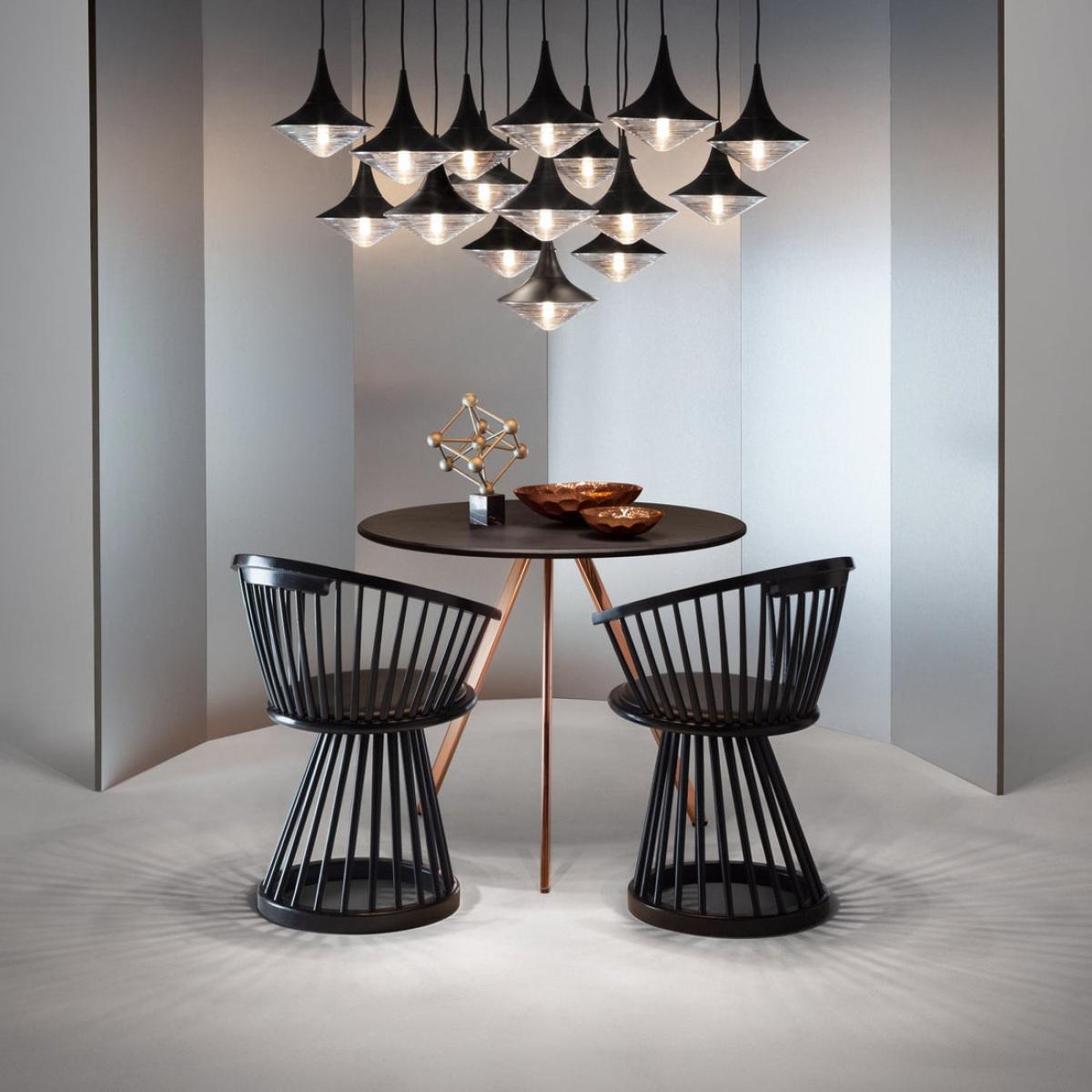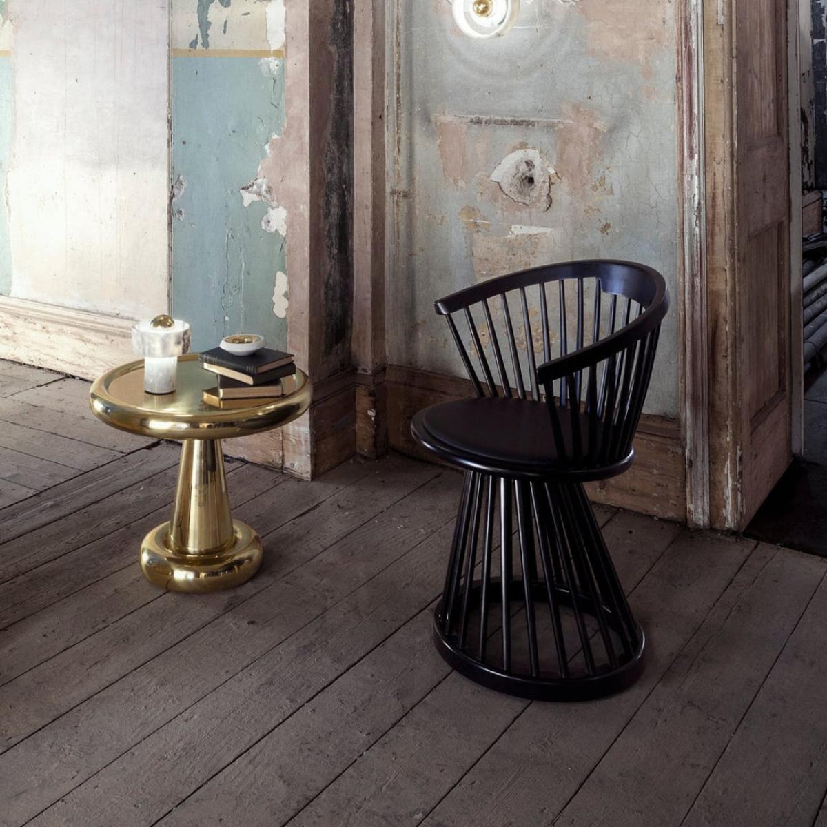 Fan Dining Chair. Originally a dramatic and sculptural take on a British design classic, Fan is available as a high back chair, dining chair, stool and table. The stools and chairs have a black leath. View More. Fan Dining Chair. Originally a dramatic and sculptural take on a British design classic, Fan is available as a high back chair, dining chair, stool and table. The stools and chairs have a black leather seat pad, while the chairs feature a curved back, offering support and comfort. Available in Black Birch or Natural Oak. Available in Black Birch and Natural Oak. Made in Lithuania.