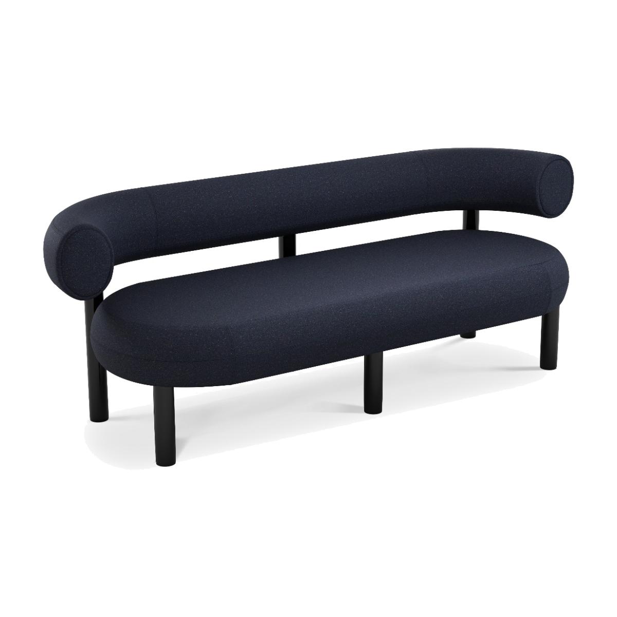 Designed to hug the body and allowing for multiple sitting positions, this sofa is upholstered in Wool. Fat is made from moulded foam with a metal leg launching in high gloss black lacquer and made to order upholstery. Manufactured in Europe, hand finished and upholstered by experienced craftsmen.