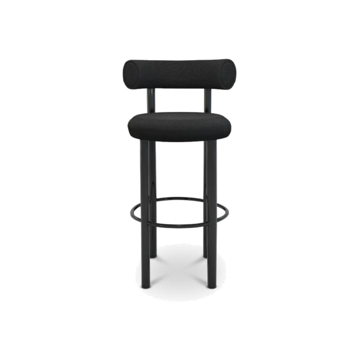 Designed to hug the body and allowing for multiple sitting positions, this lounge chair is upholstered using Kvadrat's black woollen fabric. Fat is made from moulded foam with a metal leg launching in high gloss black lacquer and made to order upholstery. Manufactured in Europe, hand finished and upholstered by experienced craftsmen. Dimensions: H: 101 x W: 55 x L: 55 cm Seat Height: 75cm Materials: Fabric, Foam, Plywood, MDF, Steel Assembly Required: No Care Instructions: Wipe with a clean, dry cloth. No harsh abrasives of cleaners