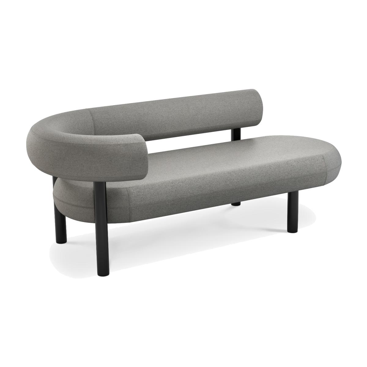 Designed to hug the body and allowing for multiple sitting positions, this chaise longue is upholstered in Wool. Fat is made from moulded foam with a metal leg launching in high gloss black lacquer and made to order upholstery. Manufactured in Europe, hand finished and upholstered by experienced craftsmen.