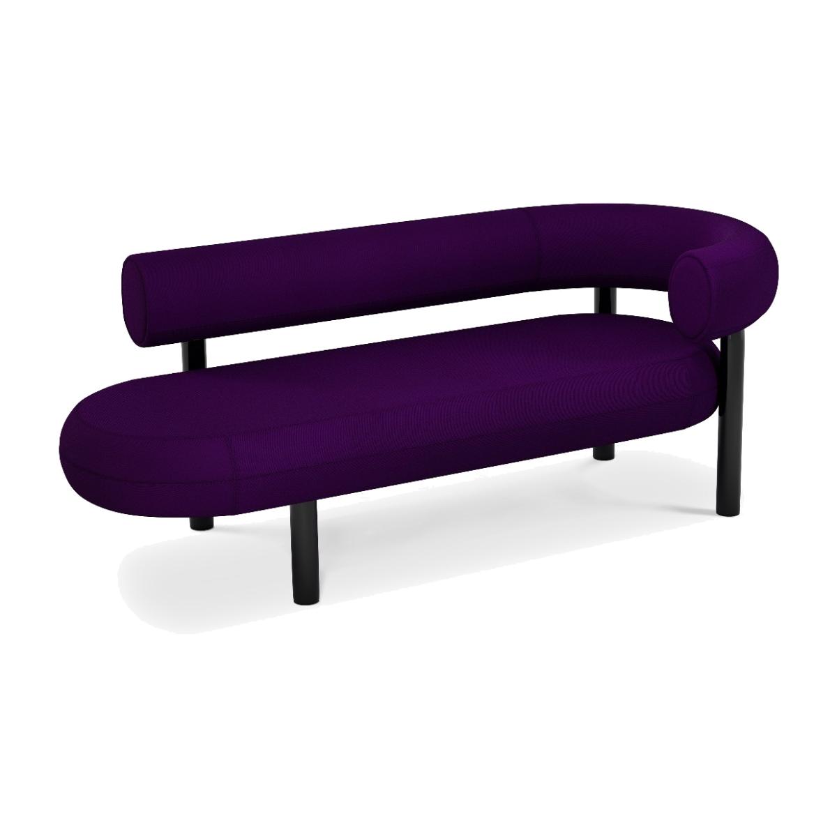 Designed to hug the body and allowing for multiple sitting positions, this chaise longue is upholstered in Wool. Fat is made from moulded foam with a metal leg launching in high gloss black lacquer and made to order upholstery. Manufactured in Europe, hand finished and upholstered by experienced craftsmen.