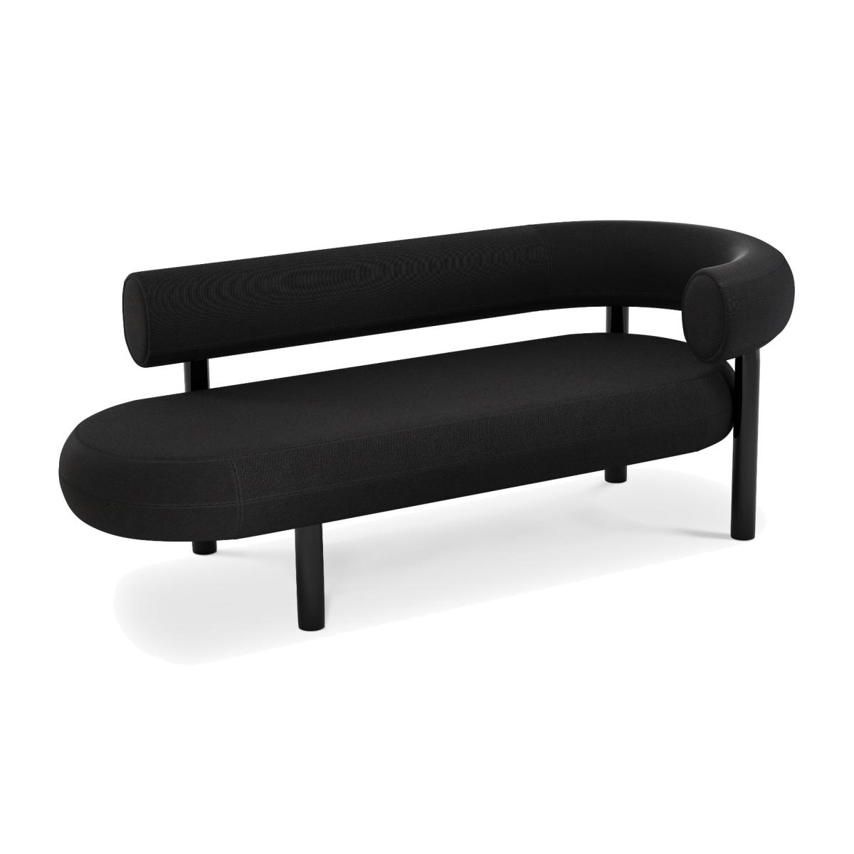 Designed to hug the body and allowing for multiple sitting positions, this chaise longue is upholstered in Wool. Fat is made from moulded foam with a metal leg launching in high gloss black lacquer and made to order upholstery. Manufactured in Europe, hand finished and upholstered by experienced craftsmen.