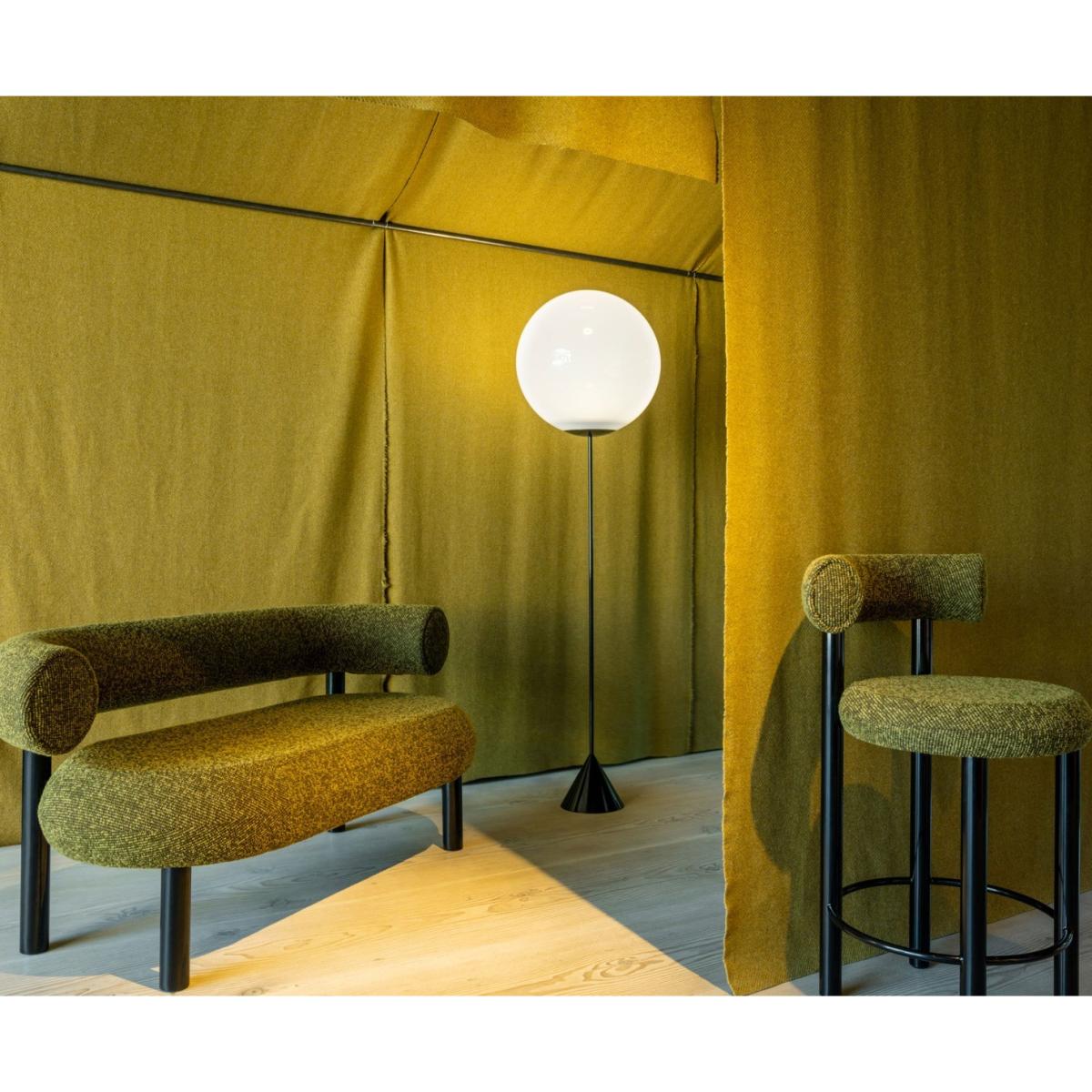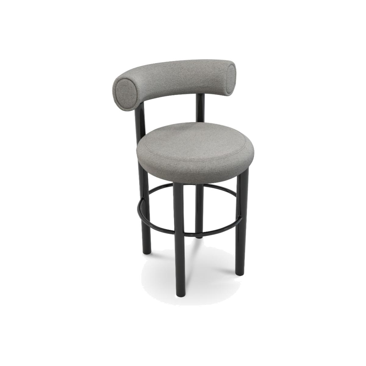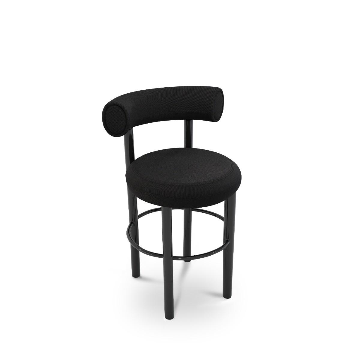 Designed to hug the body and allowing for multiple sitting positions, this stool is upholstered in Wool. Fat is made from moulded foam with a metal leg launching in high gloss black lacquer and made to order upholstery. Manufactured in Europe, hand finished and upholstered by experienced craftsmen.