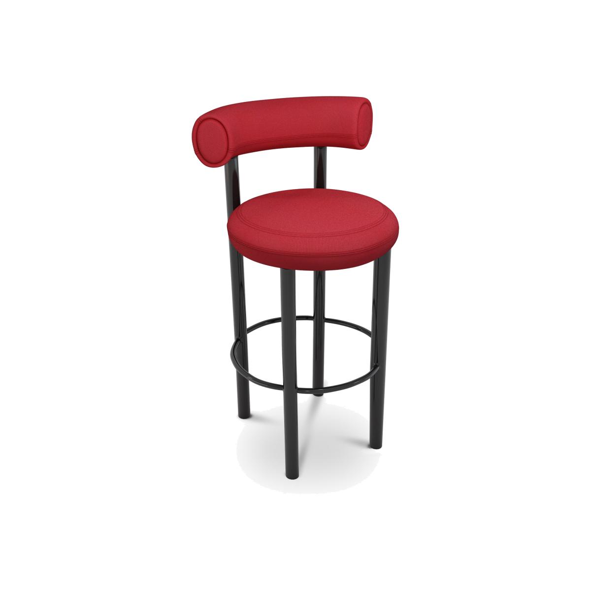 Designed to hug the body and allowing for multiple sitting positions, this stool is upholstered in Wool. Fat is made from moulded foam with a metal leg launching in high gloss black lacquer and made to order upholstery. Manufactured in Europe, hand finished and upholstered by experienced craftsmen.