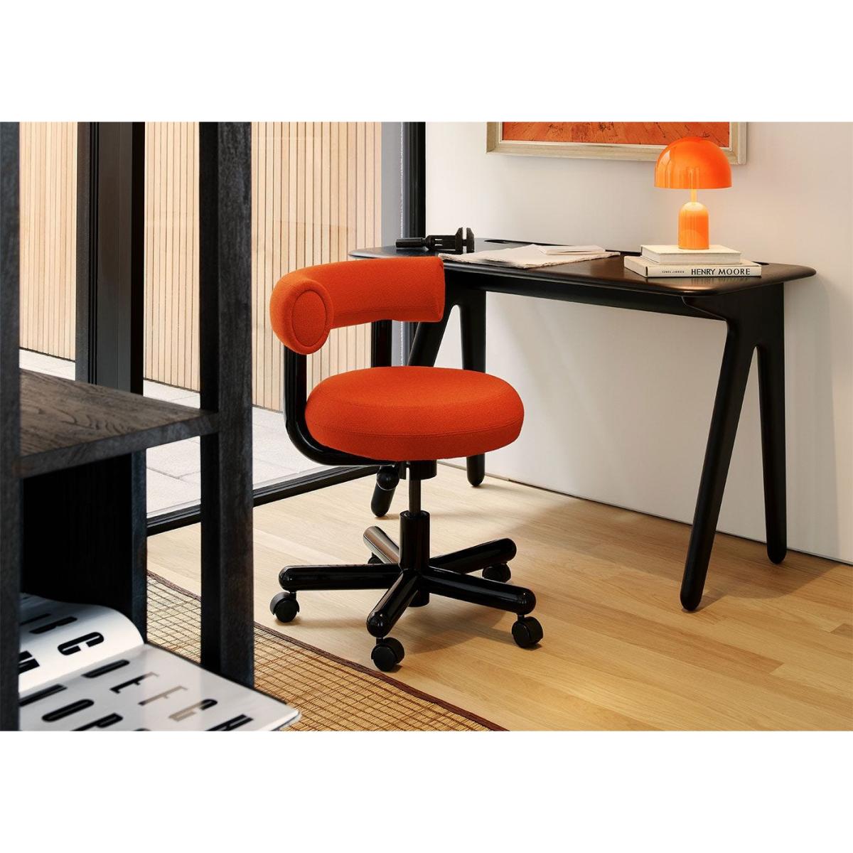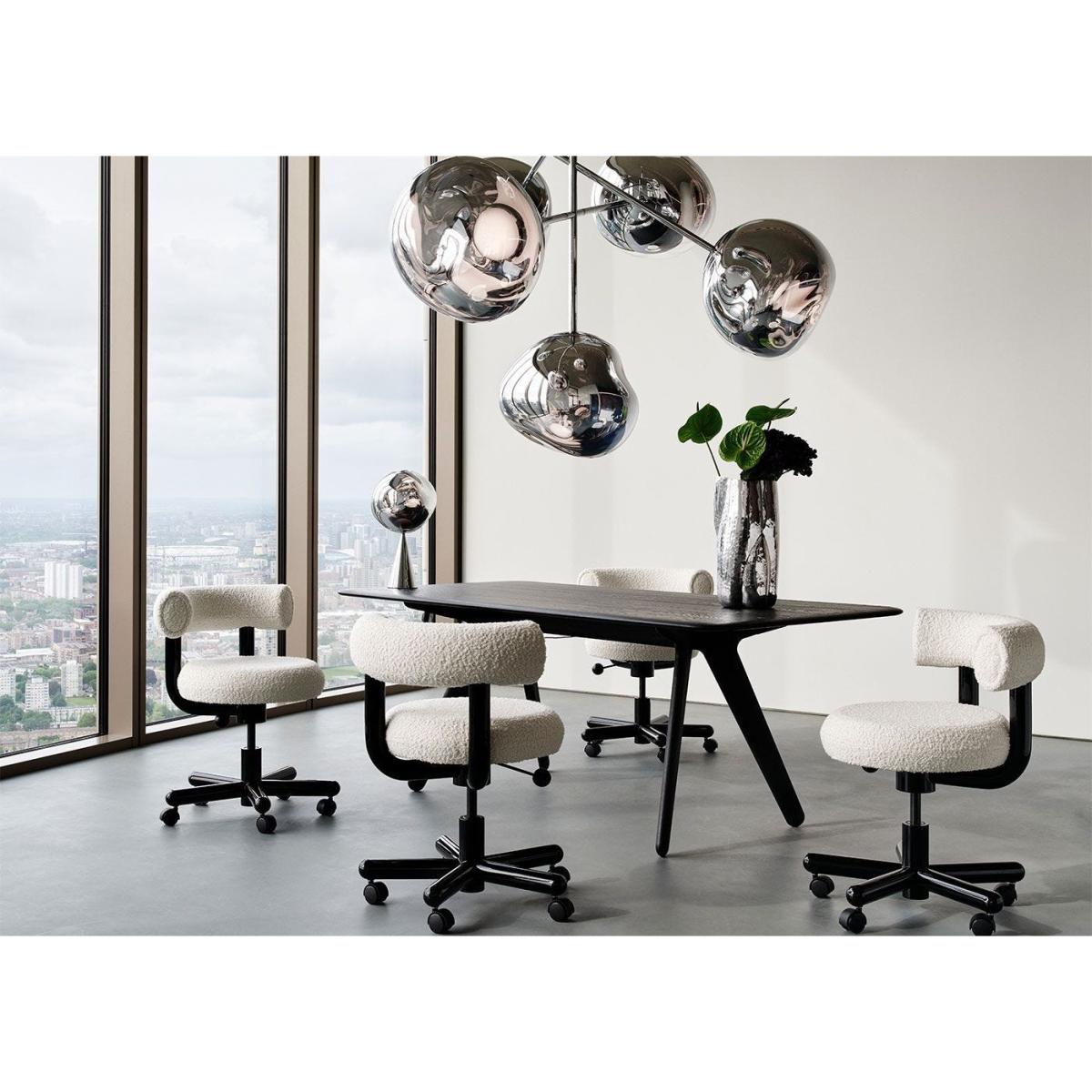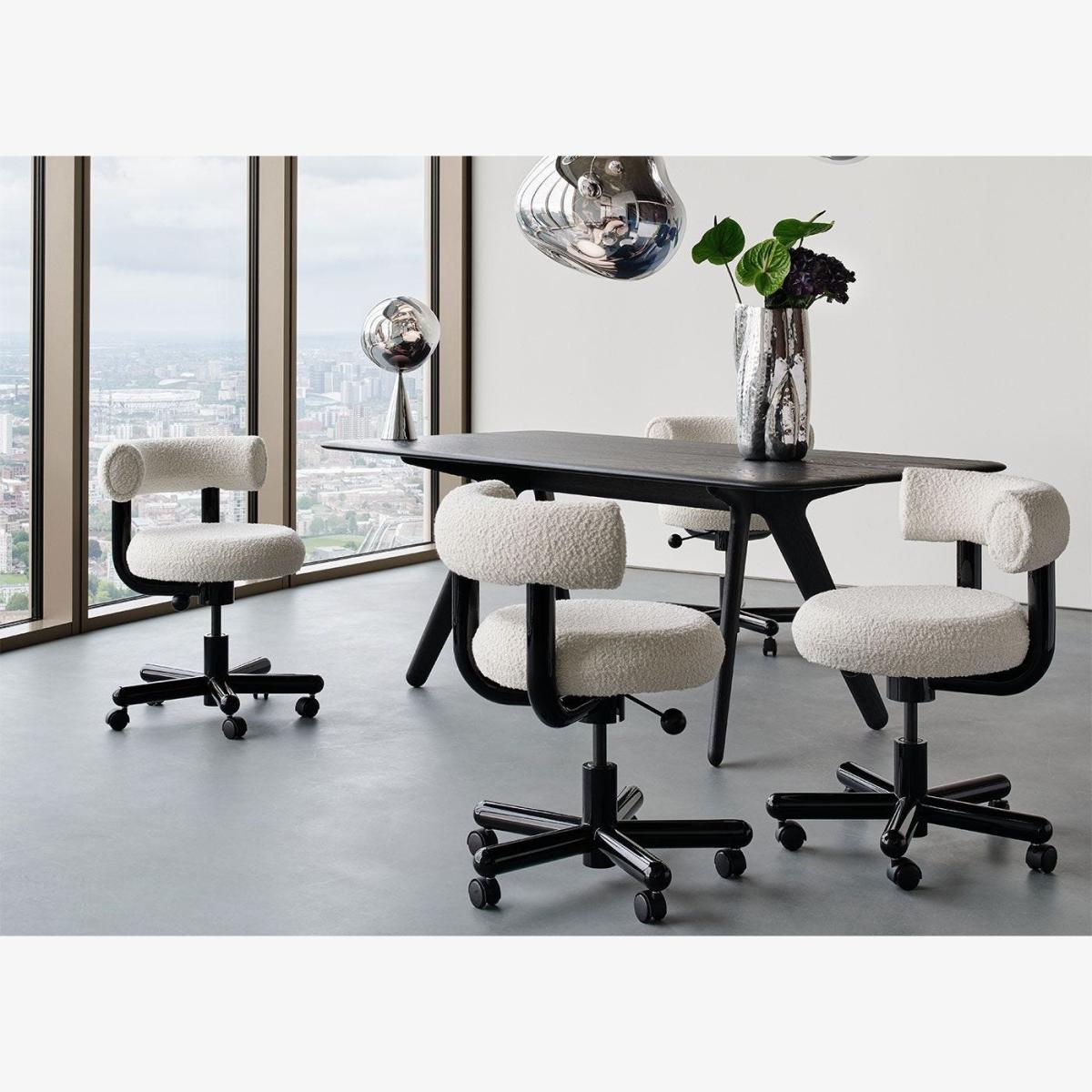 I’m a big fan of the Fat chair for its clean lines and sumptuous boucle upholstery - it brings instant texture and a slightly playful silhouette to any workspace. The cylindrical backrest and seat feel supportive without looking bulky, so it’s perfect for both home offices and sleek commercial settings. Pair it with a dark-stained oak desk or a glass-top table to balance its soft, off-white finish. Keep the surrounding palette muted - think charcoal greys, soft taupes and natural timbers - and introduce one or two sculptural accessories to echo its form. Swivel functionality and castors make it genuinely practical, so don’t hesitate to use it around meeting tables or in breakout areas.