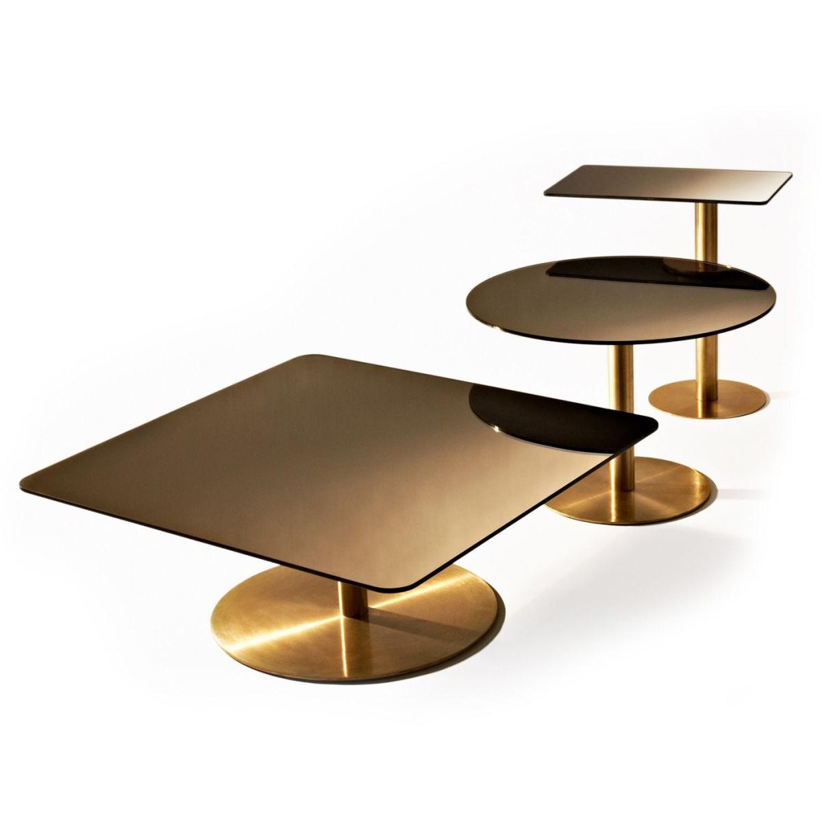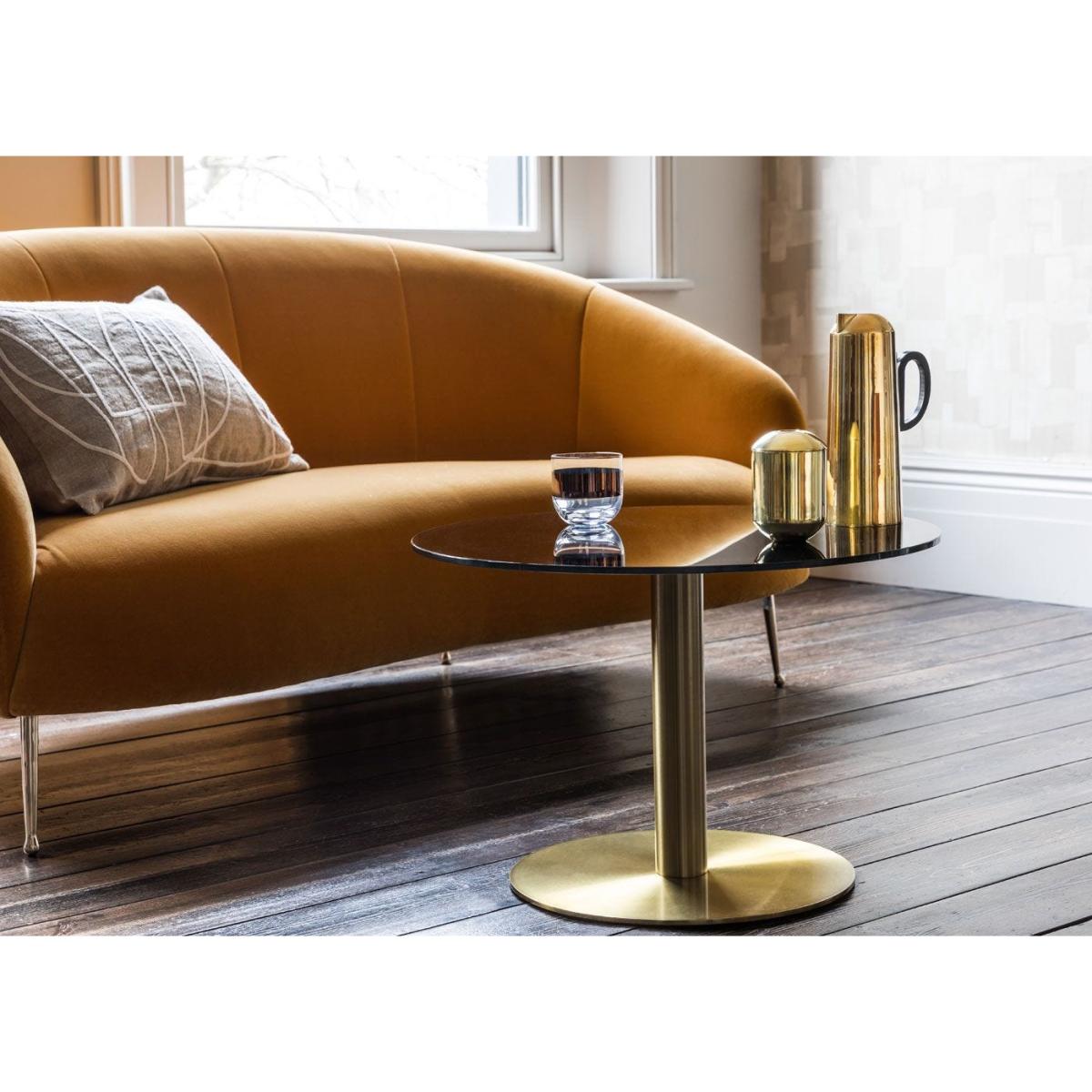 I’d call this simply the Flash side table, and what I like most is its tinted glass top paired with a slim brass stem - it’s sleek without feeling cold. It sits well in modern or minimal schemes, especially alongside a low‐profile sofa or in a smart home office corner. For styling, try it next to a monochrome armchair with a small stack of art books or a sculptural vase. If you have space, group two at different heights to create a layered look, or use one as a compact bedside table - its dark glass hides marks well, so it’s practical as well as polished.