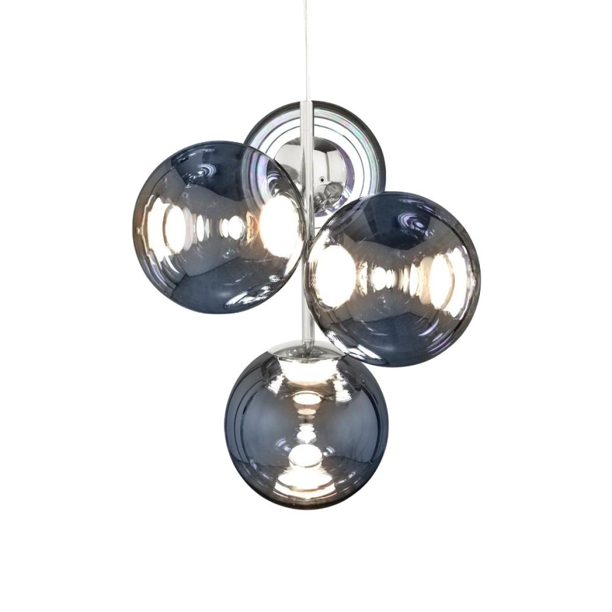In our perpetual quest for the purest forms, Globe light stands out as the most minimal of the lot. A spherical orb made from polycarbonate silver shades. Not everyone can fit huge chandeliers in their interiors, so we've created a mini chandelier that will work in more compact interiors with lower ceilings. Globe Mini Chandelier includes 4 shades in a beautiful silver finish. The result is a mesmerising interplay of light and form, creating a captivating focal point for any space. Archetypical spherical silhouette allows for use in any space. Energy-Efficient LED Lighting. Globe shades can be interchanged across all the Tom Dixon chandelier and table / floor fittings.
