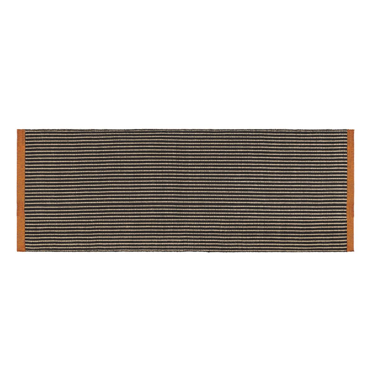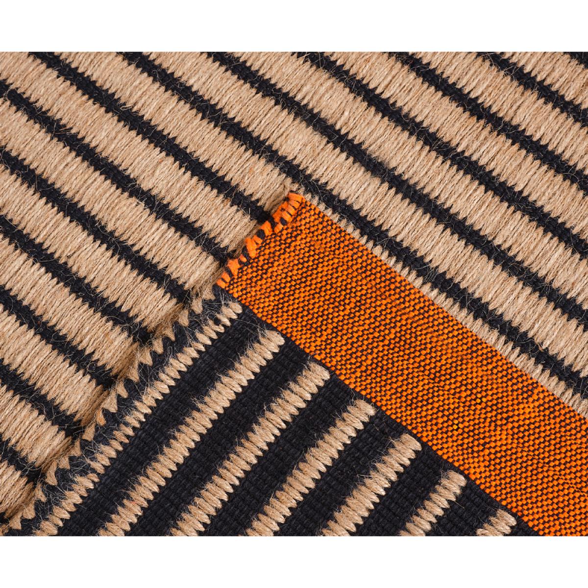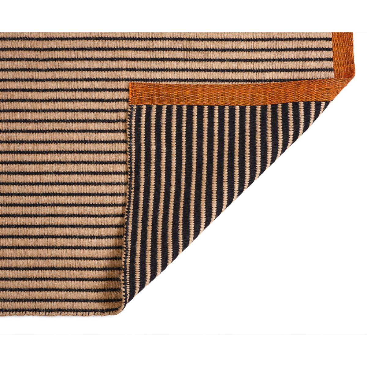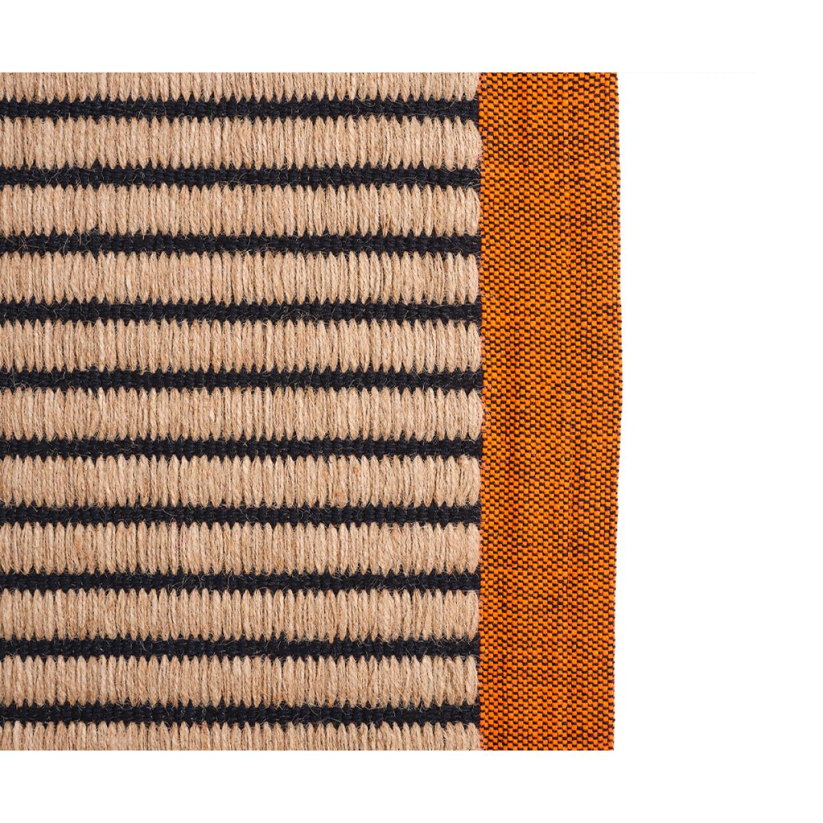 The line rug is constructed out of a striking reversible mixed yarn flat weave offering versatility and style. The contrasting orange woven band adds a vibrant pop of color, while the tiger-inspired black stripes give it a striking, dynamic look. Available in three different size options- 70x250cm, 170x240cm, and 200x300cm- the line rug is suitable for a variety of spaces whether to enhance a small space or make a statement in a larger room. Designed by the in-house Tom Dixon London Studio. Handmade by skill artisans in Northern India. Available in three sizes. Comes with a 1-year warranty for peace of mind.