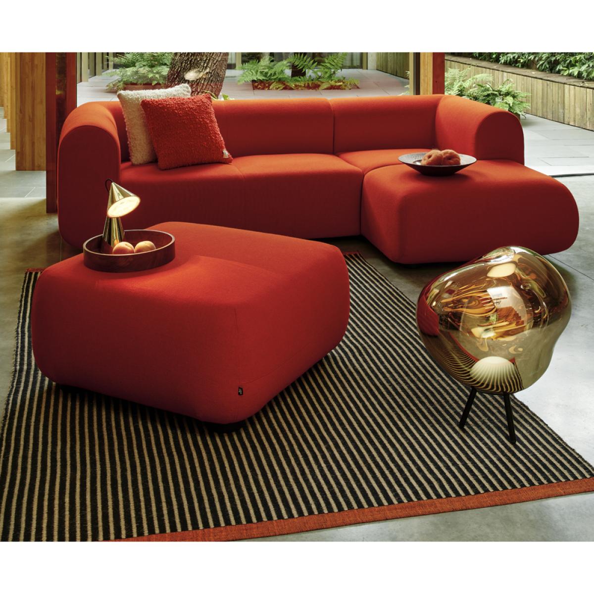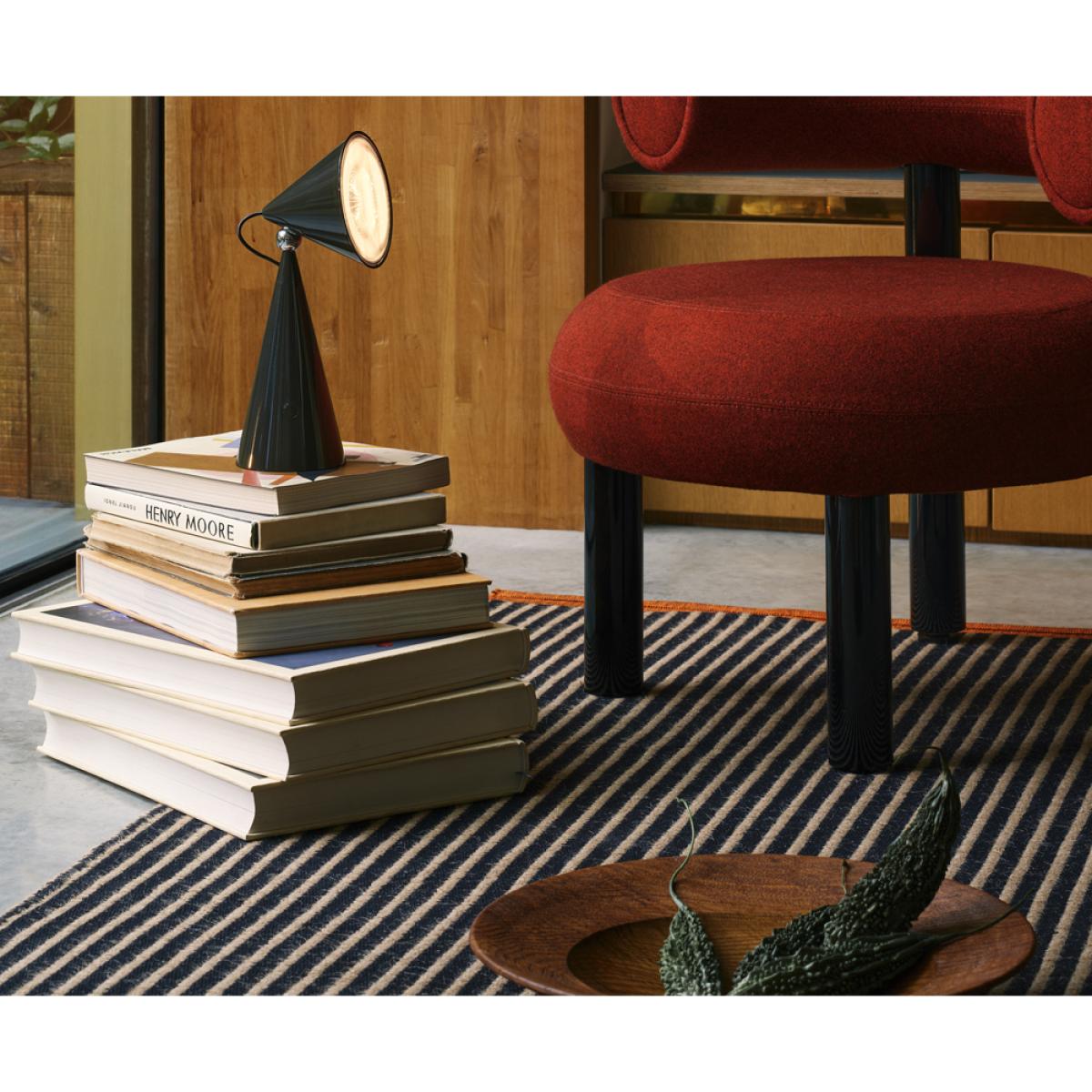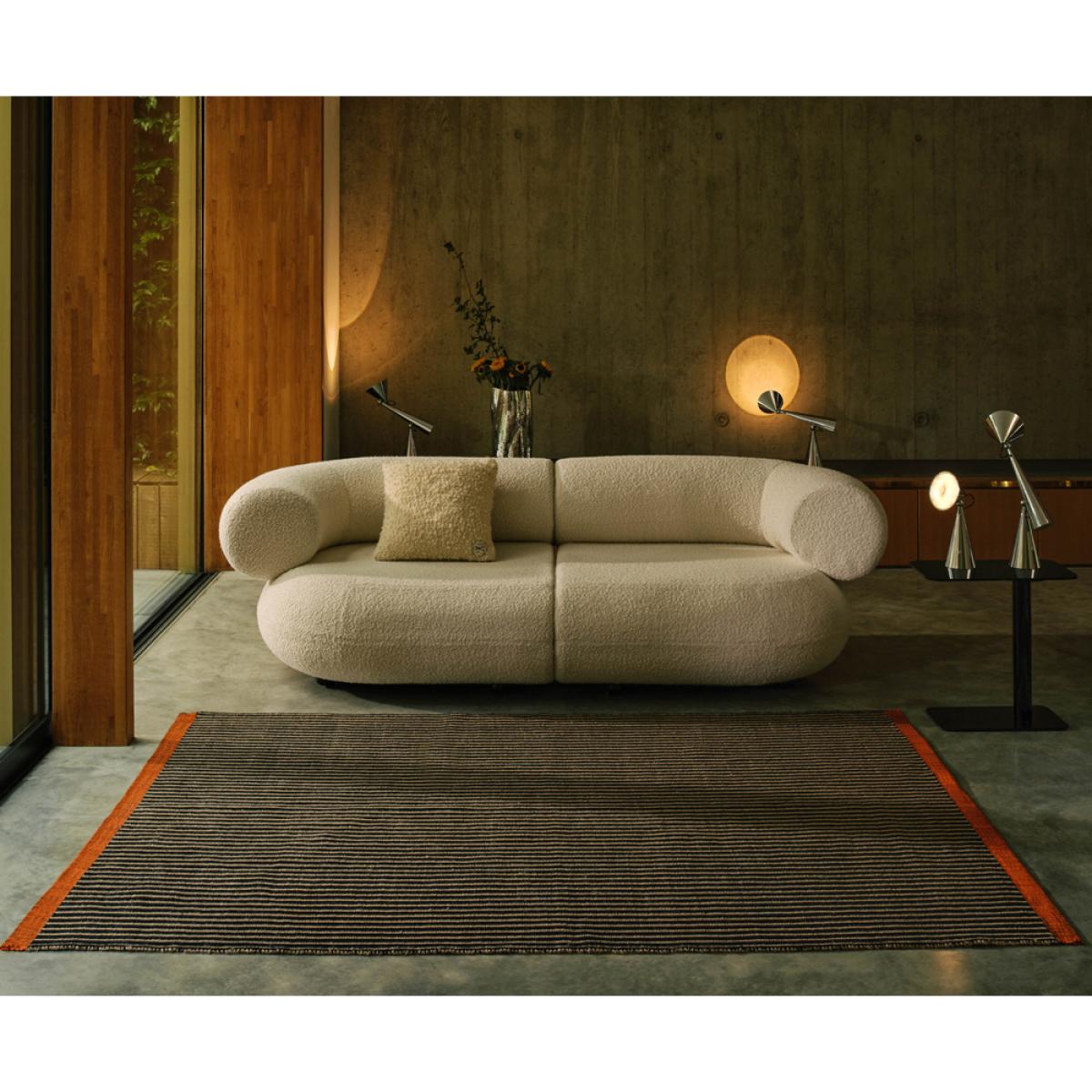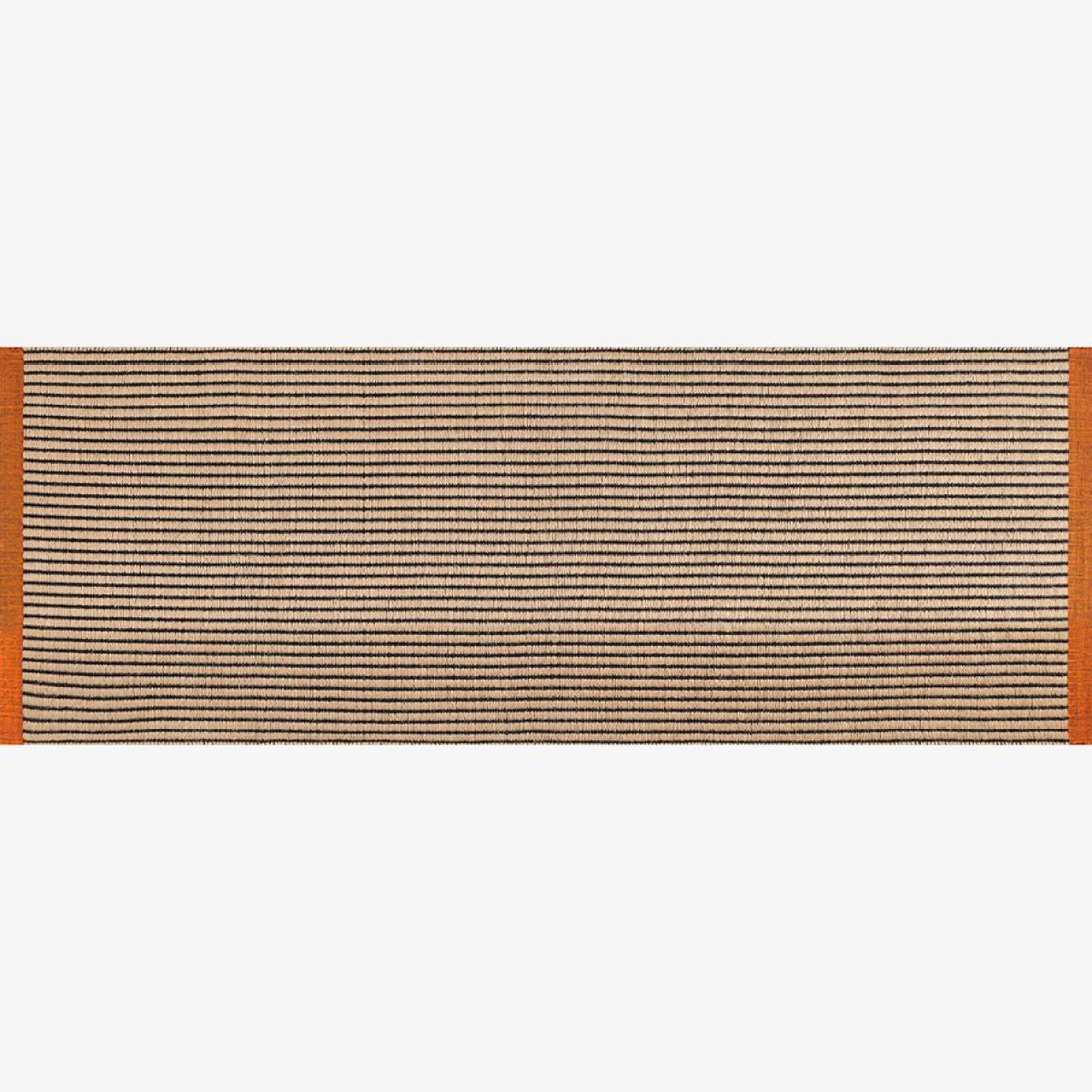 The line rug is constructed out of a striking reversible mixed yarn flat weave offering versatility and style. The contrasting orange woven band adds a vibrant pop of color, while the tiger-inspired black stripes give it a striking, dynamic look. Available in three different size options- 70x250cm, 170x240cm, and 200x300cm- the line rug is suitable for a variety of spaces whether to enhance a small space or make a statement in a larger room. Designed by the in-house Tom Dixon London Studio. Handmade by skill artisans in Northern India. Available in three sizes. Comes with a 1-year warranty for peace of mind.