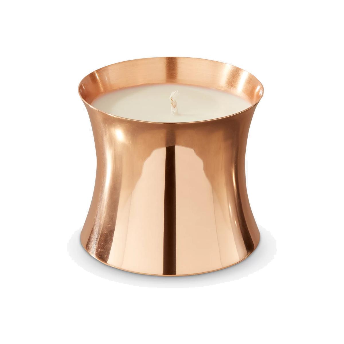 I love this candle for its modern, minimalist aesthetic and warm metallic finish, which adds a touch of sophistication to any interior. It works particularly well in contemporary or industrial-style spaces, where its sleek design can stand out against neutral palettes or textured surfaces. For styling, place it on a clean surface like a side table, shelf, or mantlepiece, paired with natural elements such as potted plants or stacks of books to create an inviting vignette. To maximise its visual impact, consider grouping it with other candles or decorative objects in similar tones, and keep it handy in living rooms or bedrooms for an easy way to add warmth and atmosphere.