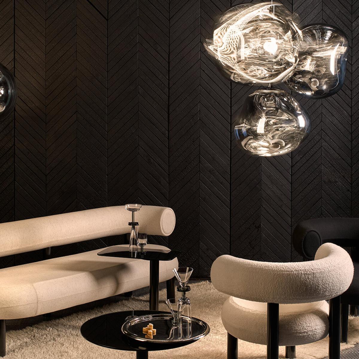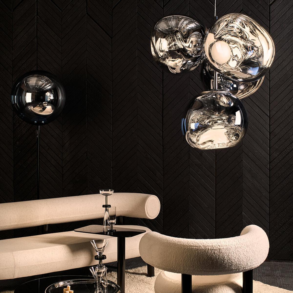 The Melt chandelier in chrome offers a striking modern statement with its sculptural, bubble-like design, making it a fantastic focal point in contemporary interiors. I love how its reflectivity enhances light distribution, adding a sleek, polished vibe to dining rooms or minimalist living spaces. It works particularly well in interiors that embrace industrial or modern themes, but can also add a touch of futuristic elegance to more eclectic settings. Practical styling tips include pairing it with matte or textured surfaces to create contrast, and considering dimmable bulbs for adjustable ambience. For a cohesive look, it pairs beautifully with monochrome palettes or as a standout piece amidst neutral tones.