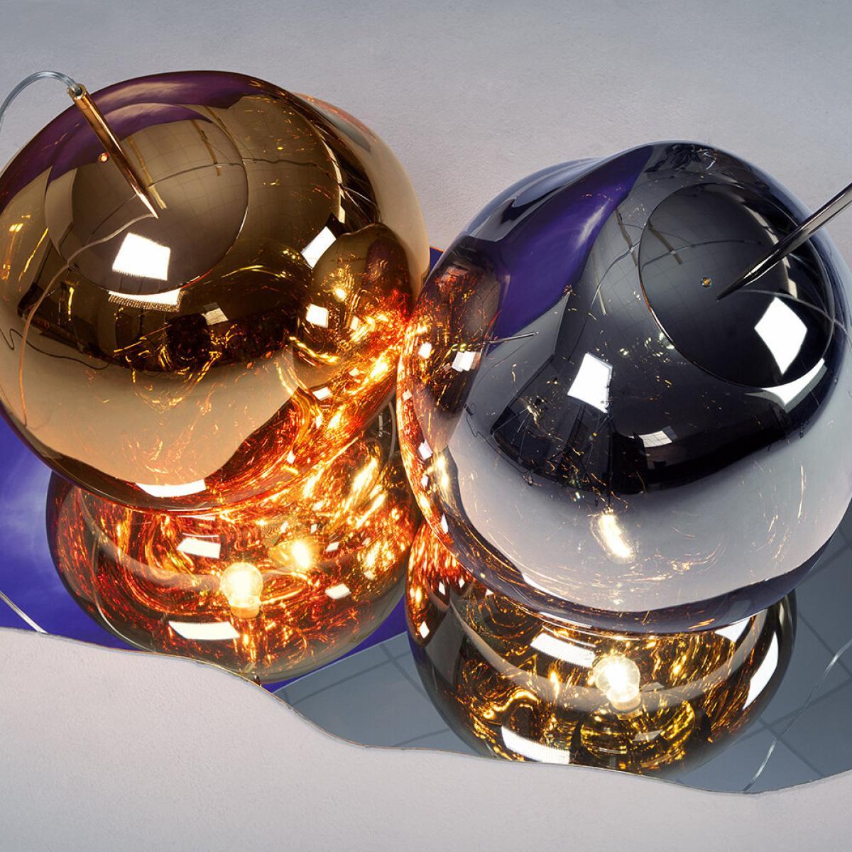 Create a striking display in the home with this Melt chandelier from Tom Dixon. When the light is on, the chrome polycarbonate bodies are transformed into a beautiful melted blown-glass effect. With a mirrored finish when it’s not in use, the large size and oversized shape will bring a touch of elegance and intrigue to the space.