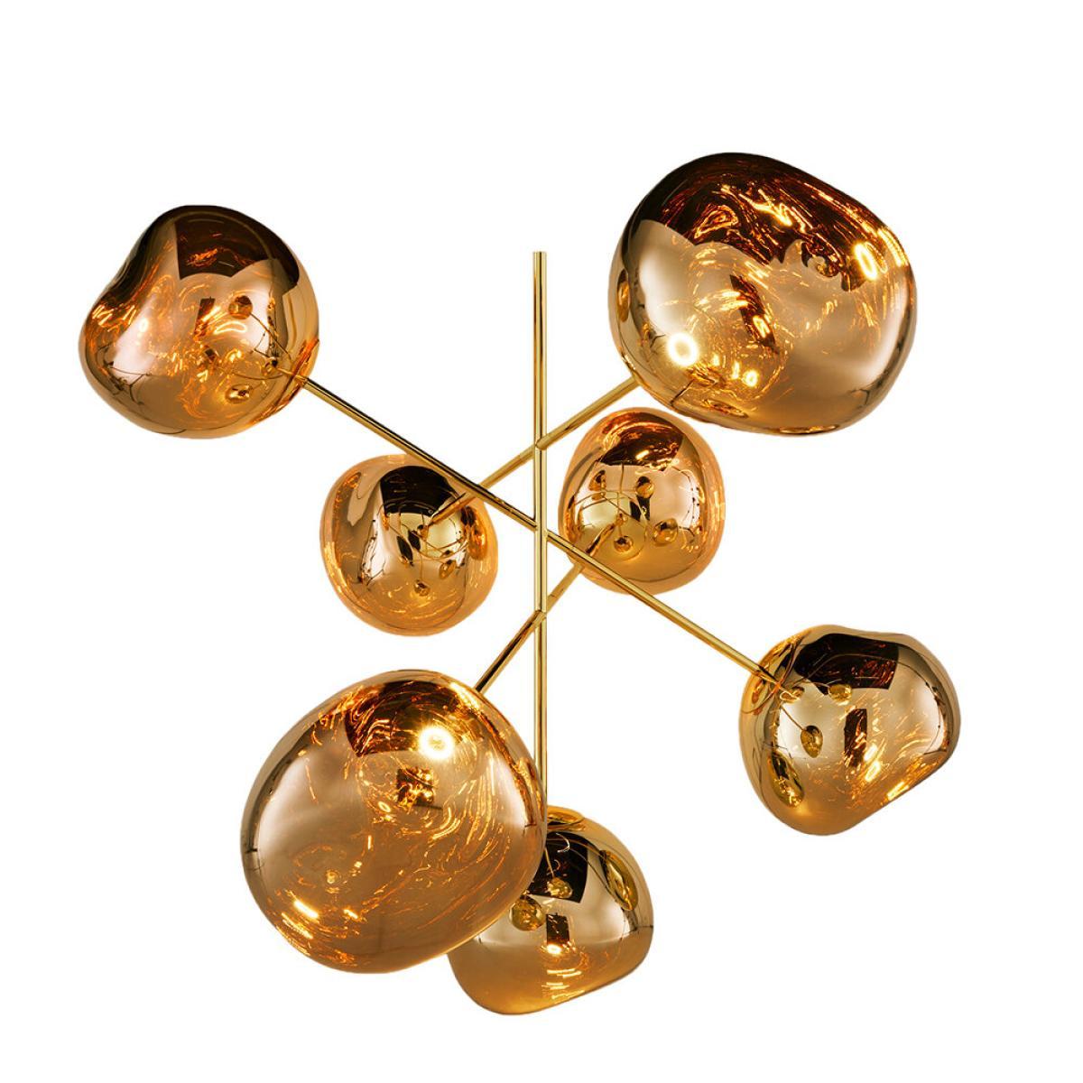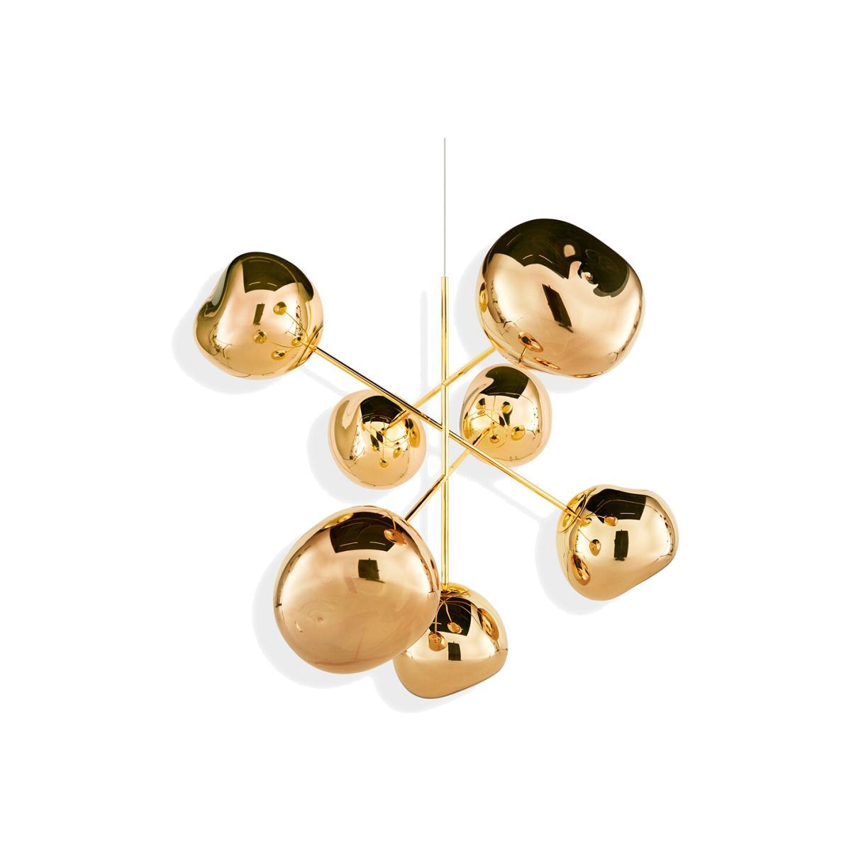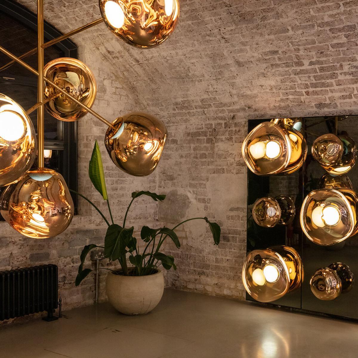 Create a striking display in the home with this Melt chandelier from Tom Dixon. When the light is on, the gold polycarbonate bodies are transformed into a beautiful melted blown-glass effect. With a mirrored finish when it’s not in use, the large size and oversized shape will bring a touch of elegance and intrigue to the space.