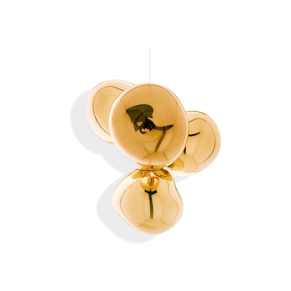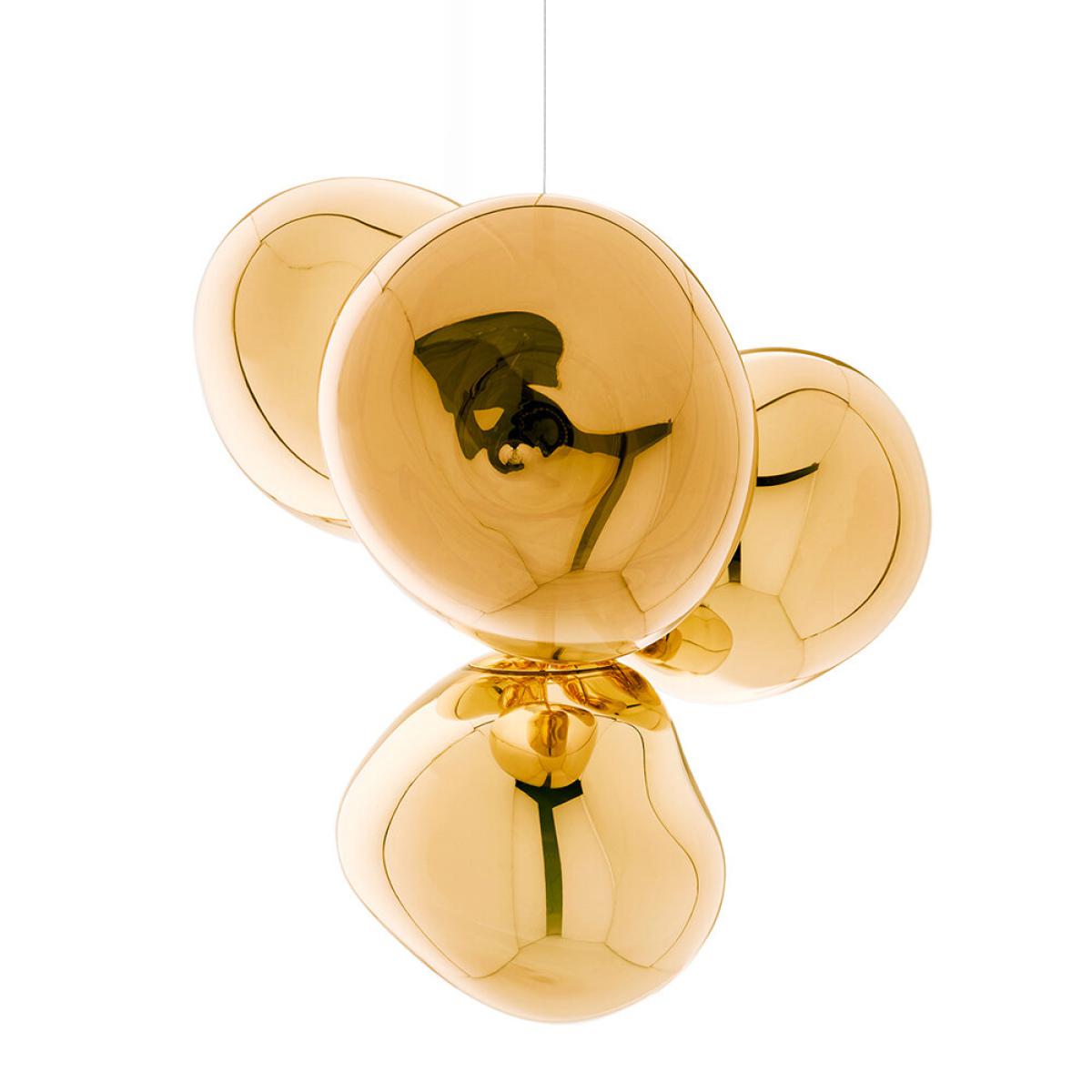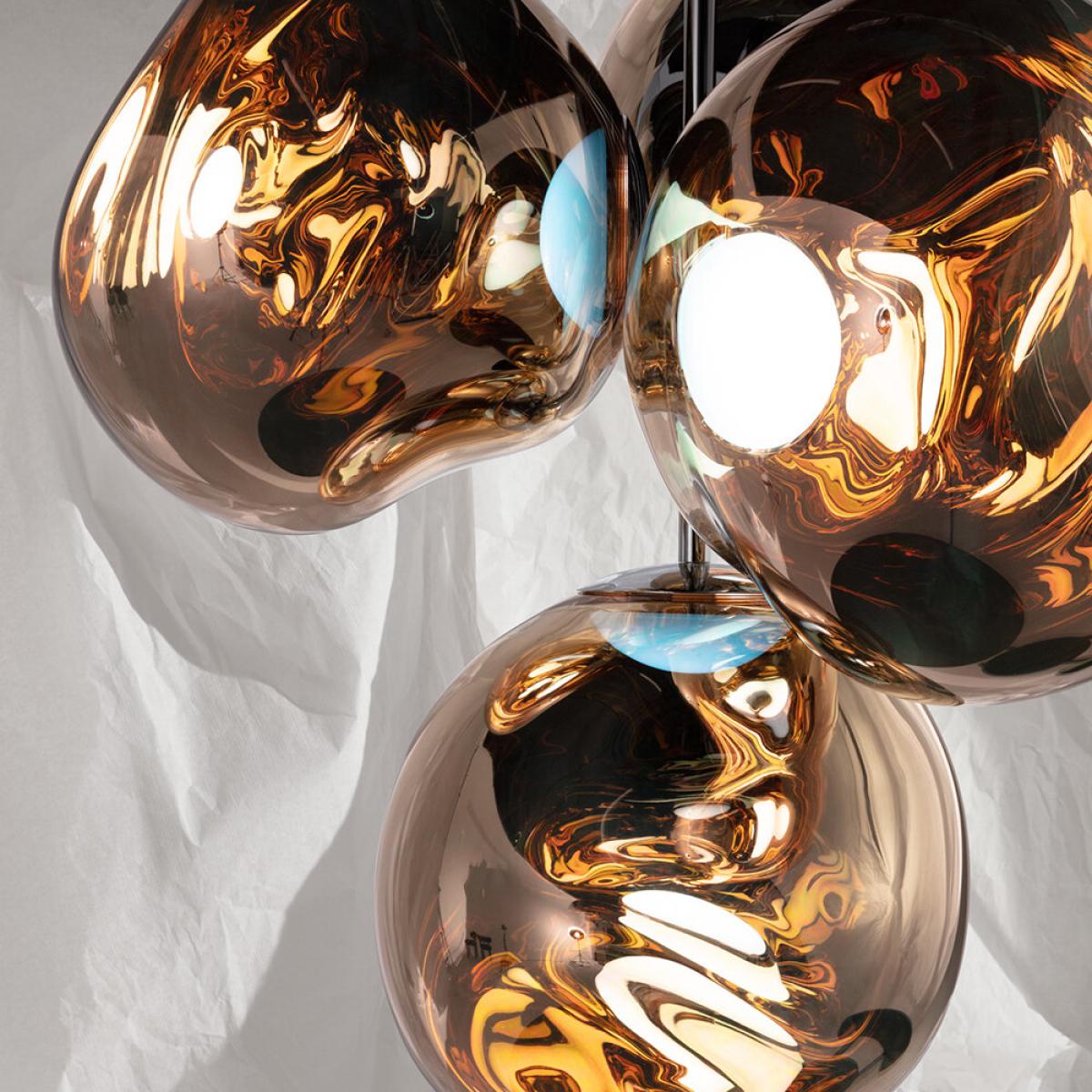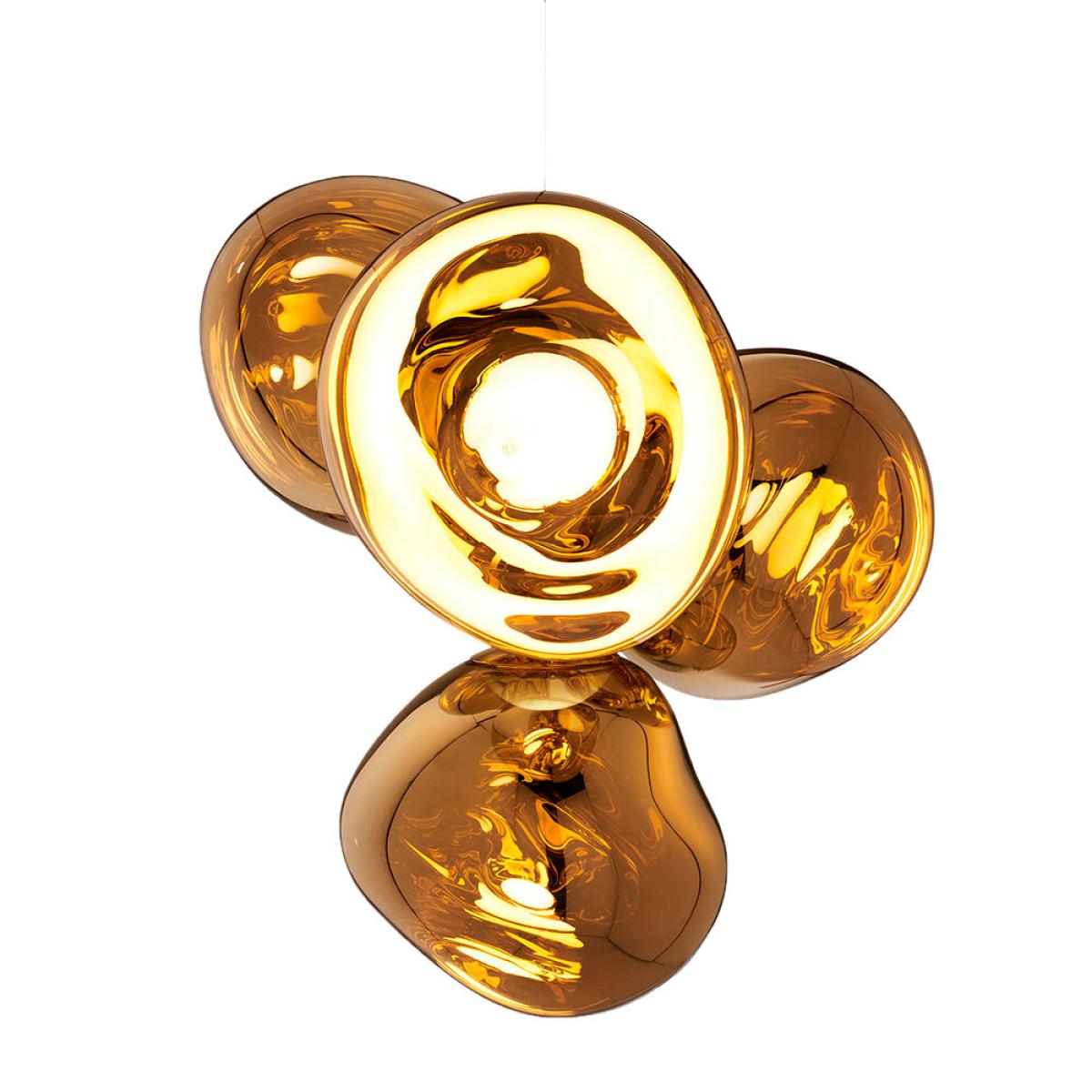 Create a striking display in the home with this Melt chandelier from Tom Dixon. When the light is on, the gold polycarbonate bodies are transformed into a beautiful melted blown-glass effect. With a mirrored finish when it’s not in use, the large size and oversized shape will bring a touch of elegance and intrigue to the space.