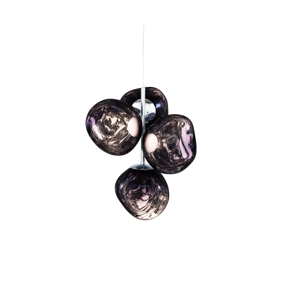 The Melt Chandelier mini LED 63.4 cm ceiling light from Tom Dixon is a compact chandelier with four Melt Mini shades in a new tinted finish. It is designed to fit perfectly in smaller spaces, while offering an ethereal glow akin to natural pearls. Made in Germany with a blown form and energy-efficient LED lighting, this ceiling light provides a sophisticated atmosphere and easy installation with only one electrical connection point. A timeless design for modern city living in a smaller format.