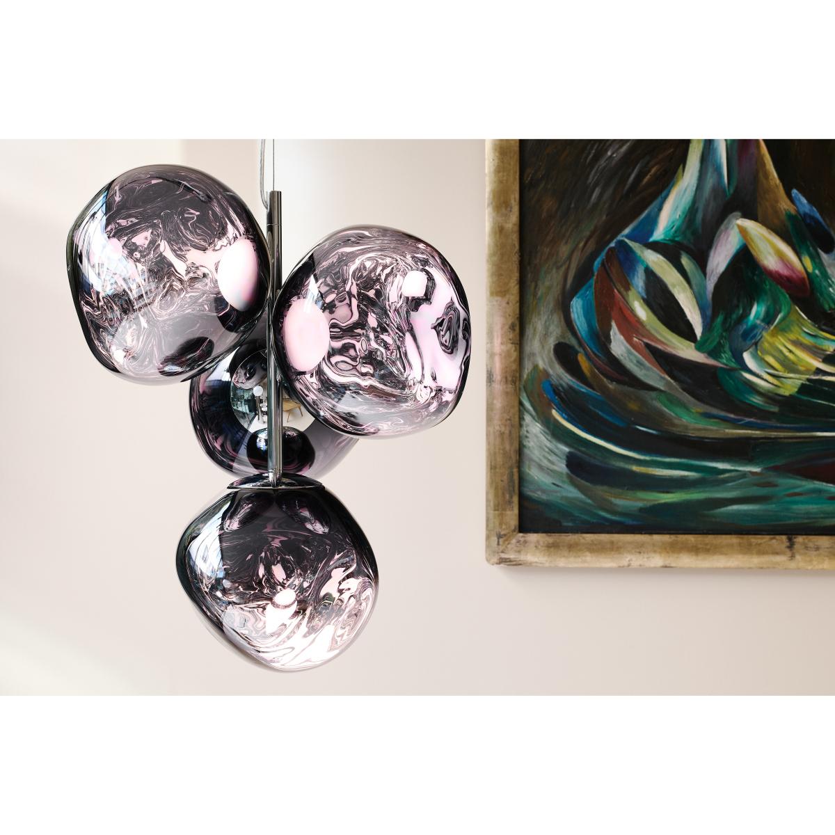 I love the Melt mini chandelier for its sleek, modern silhouette and versatile smoked glass finish, which adds a sophisticated touch to contemporary interiors. It works beautifully in minimalist and industrial settings, where its reflective surface can add depth and a subtle hint of luxury. For styling tips, consider pairing it with neutral colour palettes to let the pendant stand out, or suspend it above a dining table or kitchen island to create a striking focal point. Its compact size also makes it ideal for smaller rooms or low-ceilinged spaces, providing ample ambient light without overwhelming the space. A great choice for those seeking a statement piece that combines form and function seamlessly.
