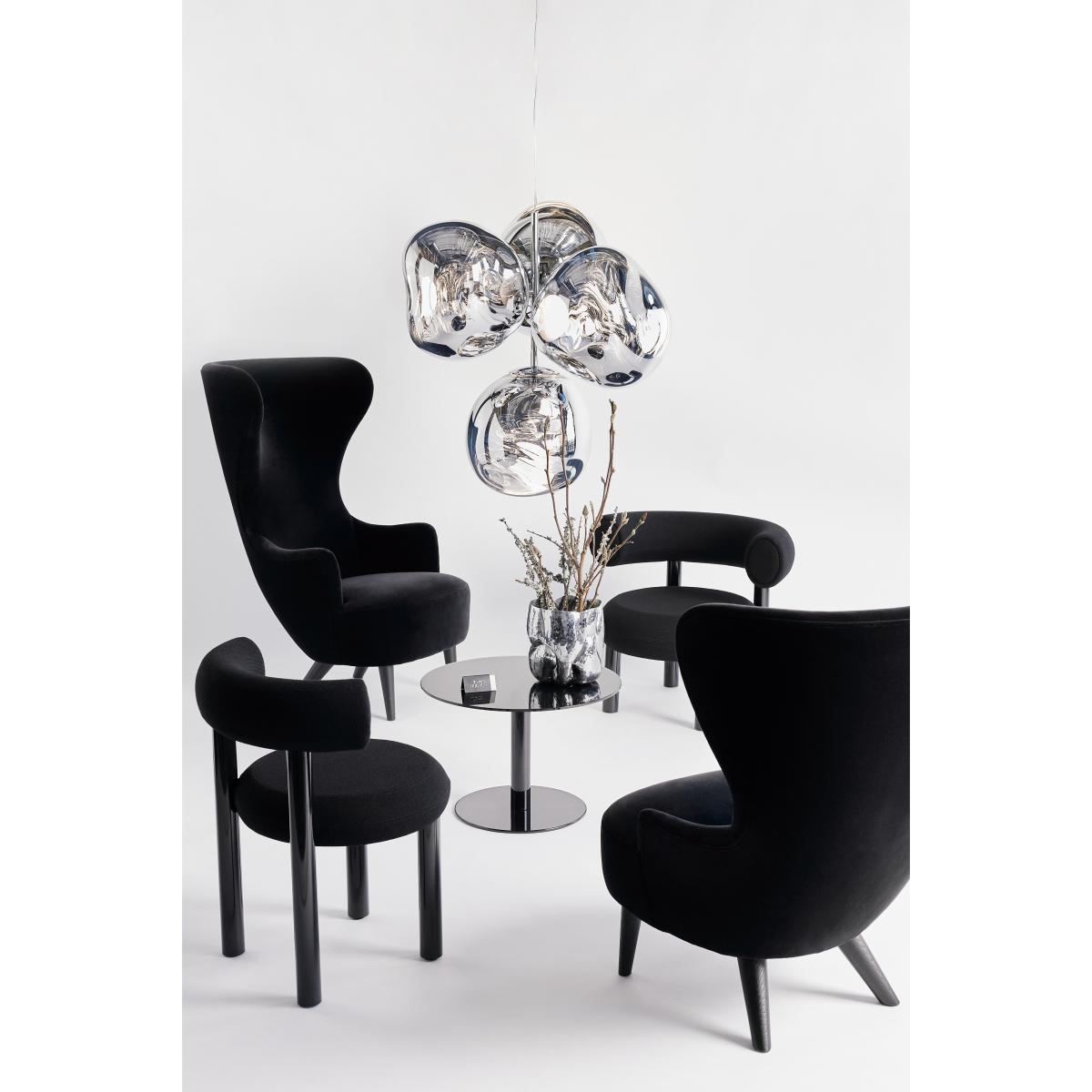 Melt Chandelier small LED 103 cm offers an extraordinary lighting experience. With four orbs extending from steel rods, this chandelier reaches one metre high and becomes a unique part of your décor. The innovative LED module provides efficient illumination, perfect for redefining classic charm with a new twist. Customise your lighting with this piece from the Melt collection, designed by Tom Dixon.