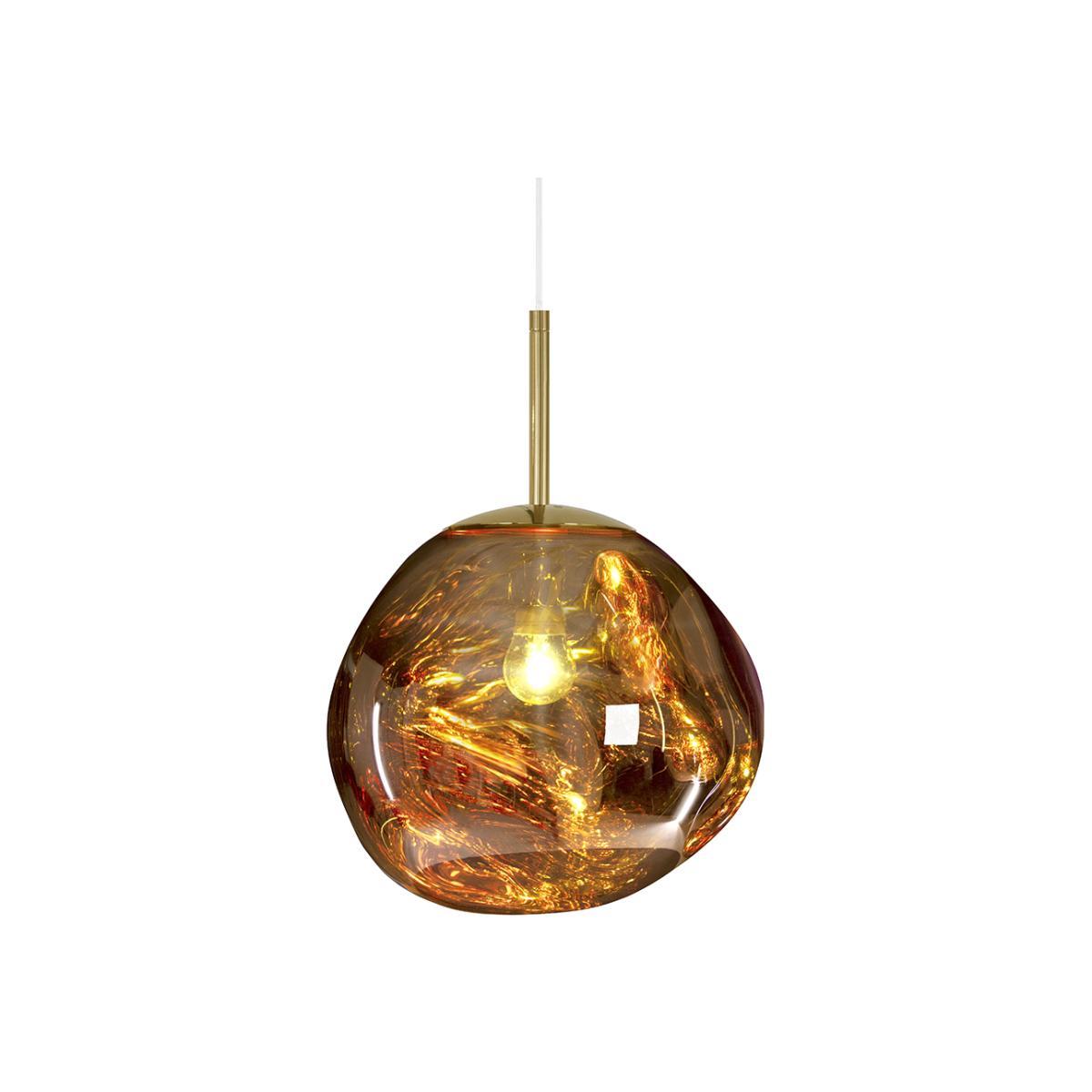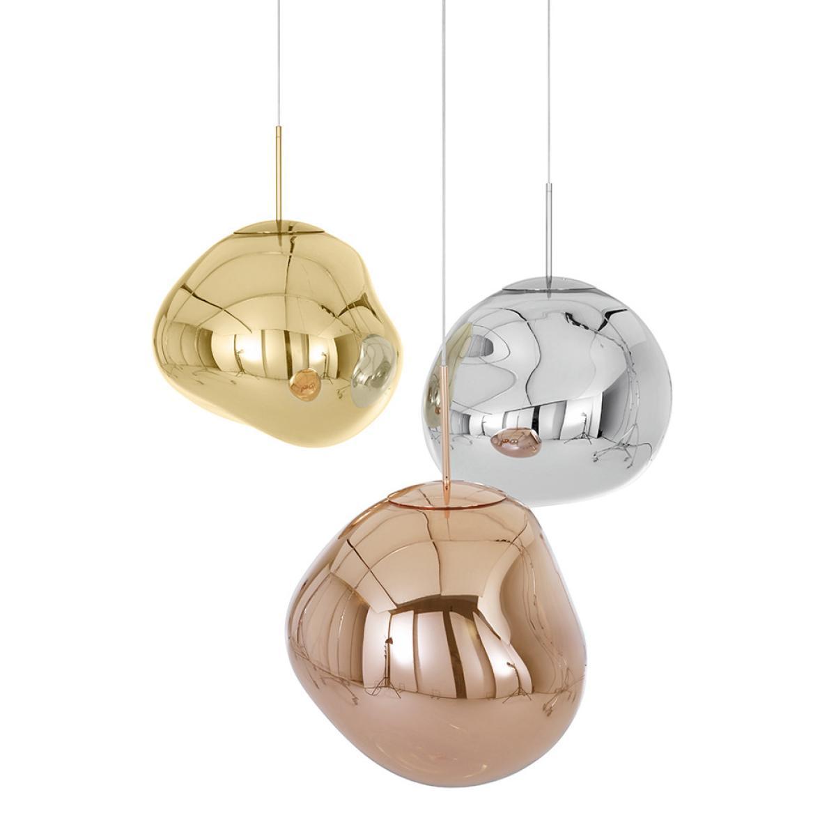 Inject incredible modern design into your home with this Melt Mini Pendant Light from Tom Dixon. Crafted from polycarbonate, its distorted shaping rests in a chic mirrored finish when the light is switched off. When switched on, its pendant transforms into a stunning melted blown glass effect that will draw admiration from guests to your home. Available in three colours this light is sure to update any interior it is placed in.
