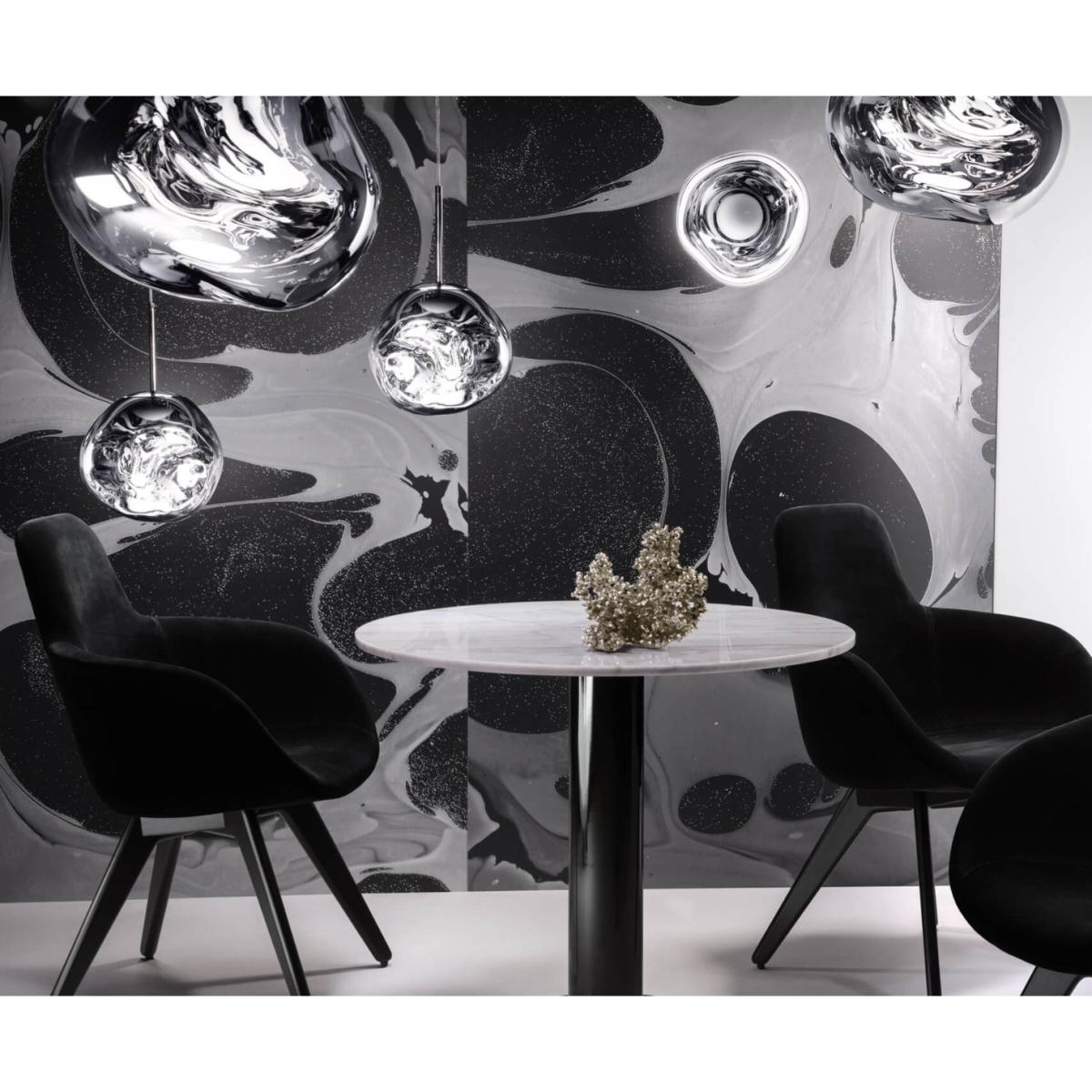 An extraordinary mega chandelier featuring six Melt and five Melt Mini pendant lights in a modern Chrome finish. Each ceiling light creates a mesmirizing melting hot-blown glass effect when on and a mirror-finish effect when off and features our intergrated LED module. Melt lights are made in Germany using a high tech manufacturing technique to achieve a perfect melted orb.