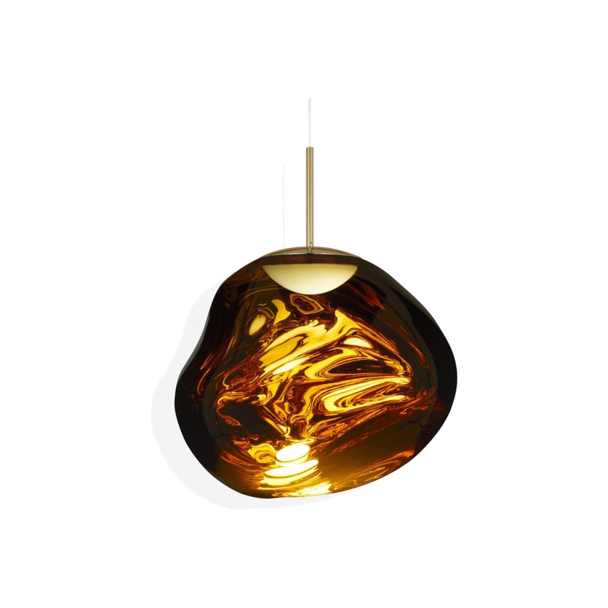 Melt is a beautifully distorted pendant light in a modern finish. Emitting an attractive, mildly hallucinogenic light, this Tom Dixon ceiling light creates a mesmerizing melting hot-blown glass effect when on and a mirror-finish effect when off. Made in Germany using a high tech manufacturing technique to achieve the perfect melted orb.