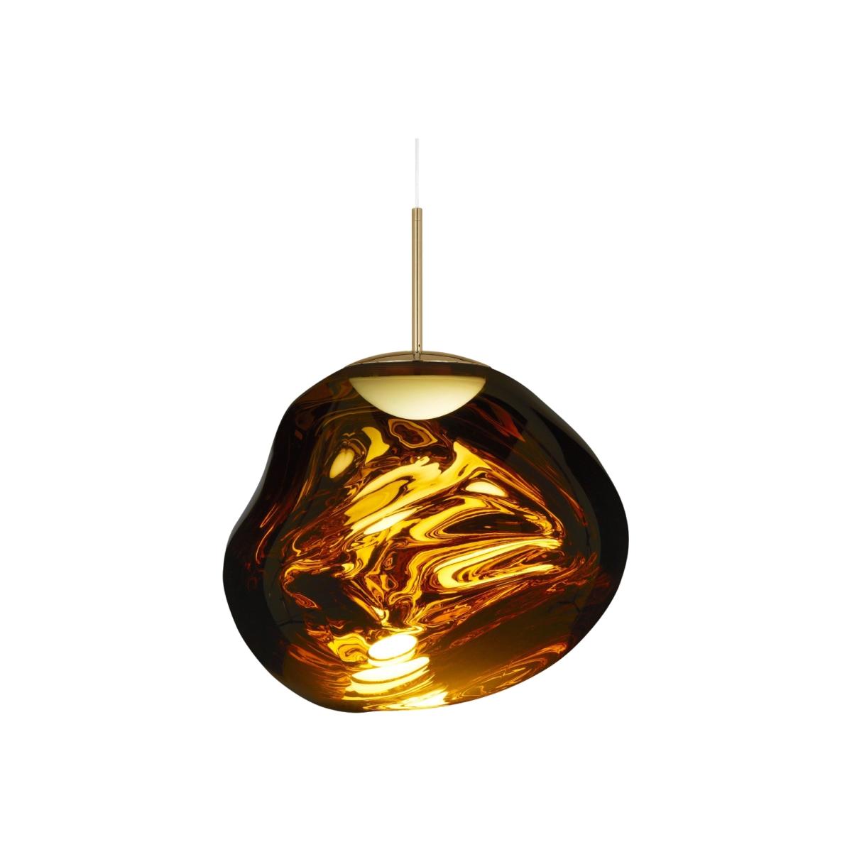 Melt is a beautifully distorted pendant light in a modern finish. Emitting an attractive, mildly hallucinogenic light, this Tom Dixon ceiling light creates a mesmerizing melting hot-blown glass effect when on and a mirror-finish effect when off. Made in Germany using a high tech manufacturing technique to achieve the perfect melted orb.