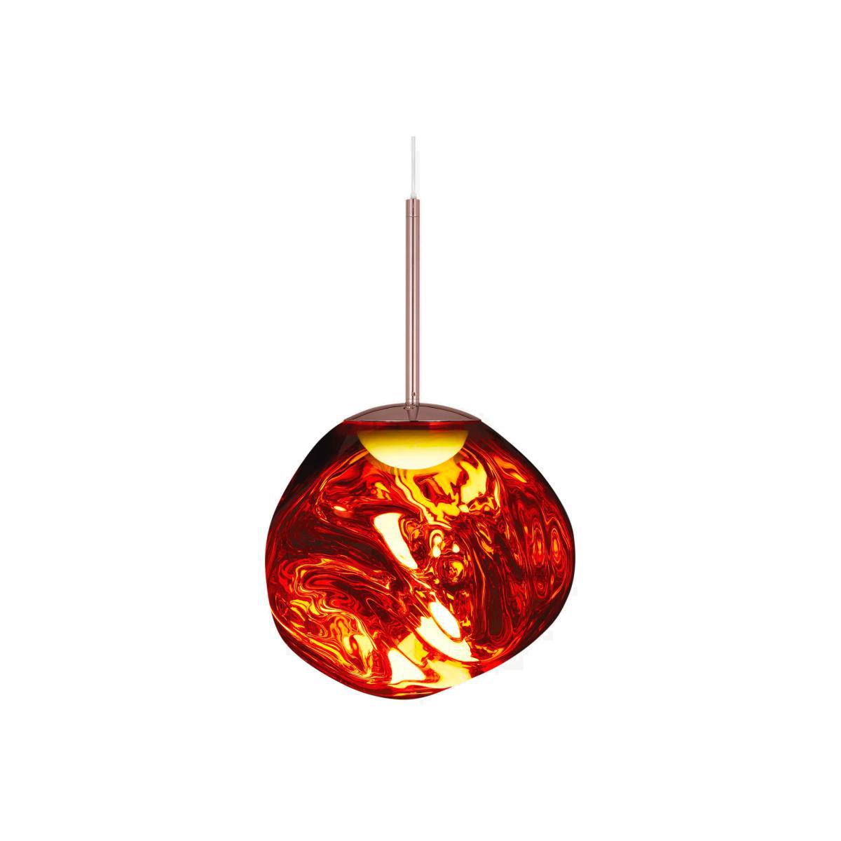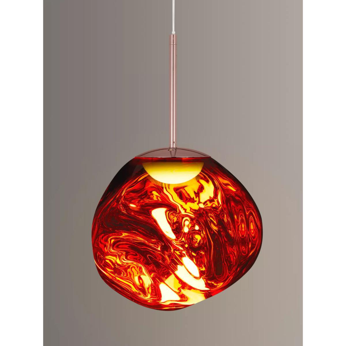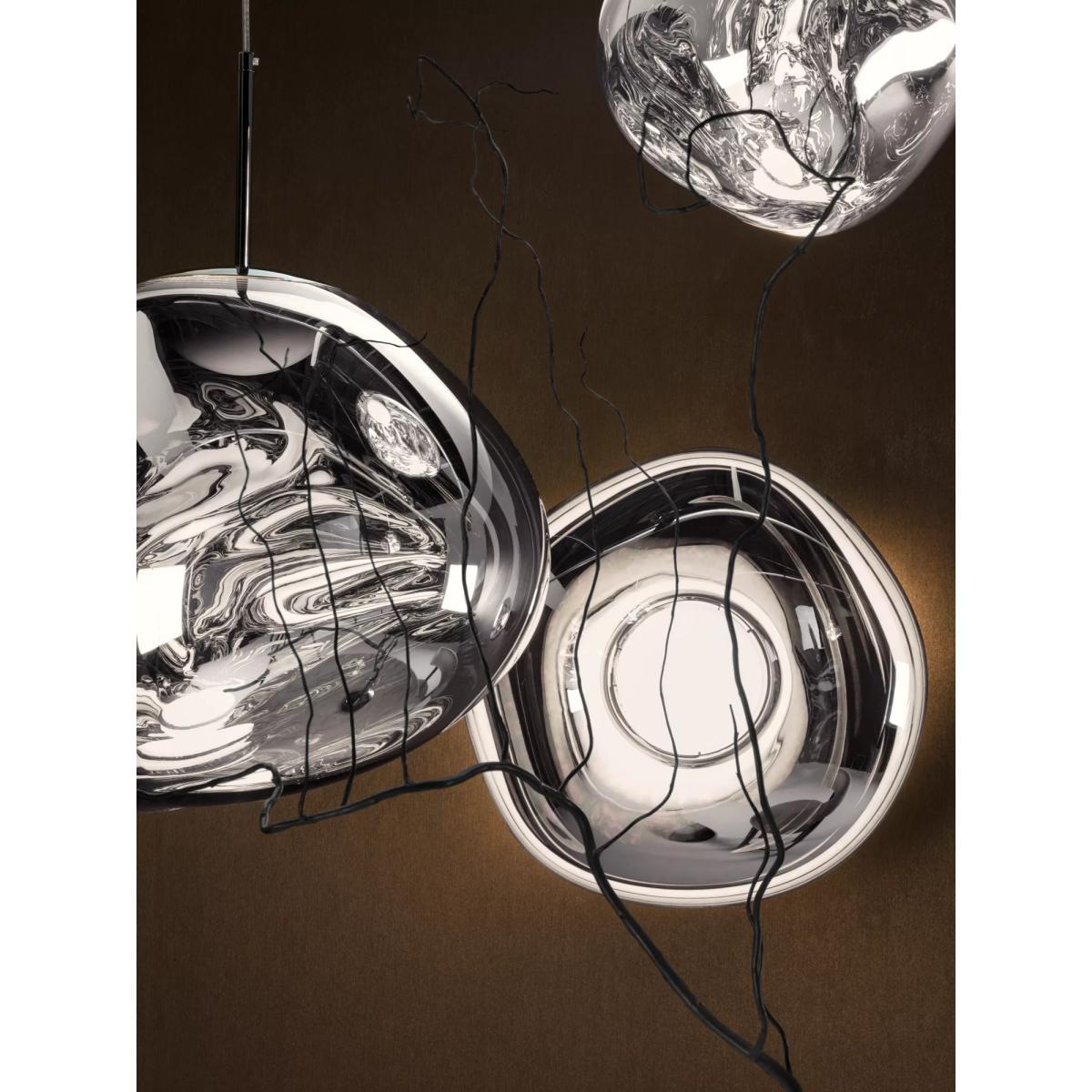 Part of Tom Dixon's celebrated Melt range, the distorted design of this striking, yet smaller pendant creates the effect of melting hot blown glass. This ceiling light is equipped with an integrated LED which emits an ambient and mild glow of light. It's translucent when switched on and has a mirror-finish when switched off. More about the design Designed in collaboration with Swedish radical design collective, FRONT, this range explores the technologically advanced field of vacuum metallisation. Light bounces off and reflects around the pendant's uneven surface to create a dramatic melting effect. Its internal luminosity is visible in full daylight. Worth knowing To create a more innovative look, this light has been designed to incorporate the LEDs within it. This LED is not replaceable but has an impressive lifespan of up to 50,000 hours. LEDs use around 85% less energy than incandescent bulbs.