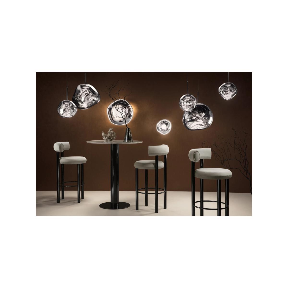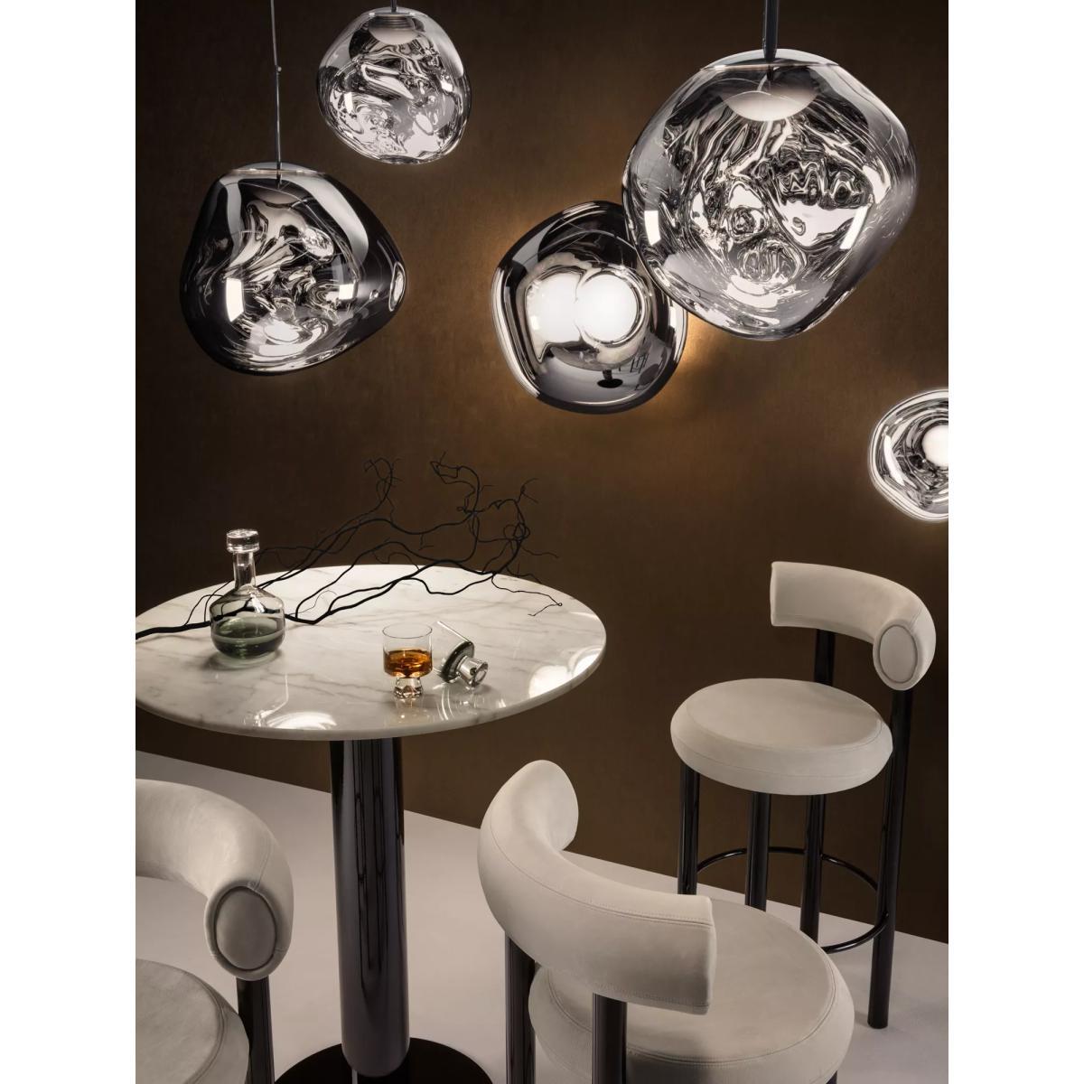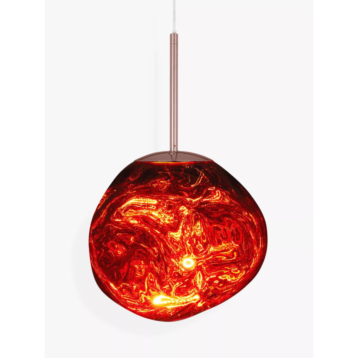 Part of Tom Dixon's celebrated Melt range, the distorted design of this striking, yet smaller pendant creates the effect of melting hot blown glass. This ceiling light is equipped with an integrated LED which emits an ambient and mild glow of light. It's translucent when switched on and has a mirror-finish when switched off. More about the design Designed in collaboration with Swedish radical design collective, FRONT, this range explores the technologically advanced field of vacuum metallisation. Light bounces off and reflects around the pendant's uneven surface to create a dramatic melting effect. Its internal luminosity is visible in full daylight. Worth knowing To create a more innovative look, this light has been designed to incorporate the LEDs within it. This LED is not replaceable but has an impressive lifespan of up to 50,000 hours. LEDs use around 85% less energy than incandescent bulbs.