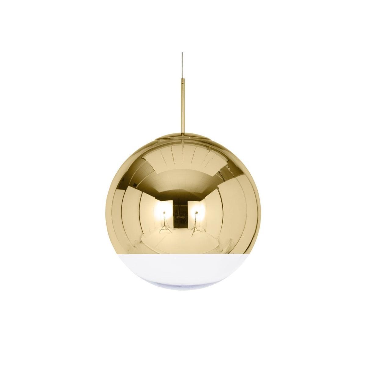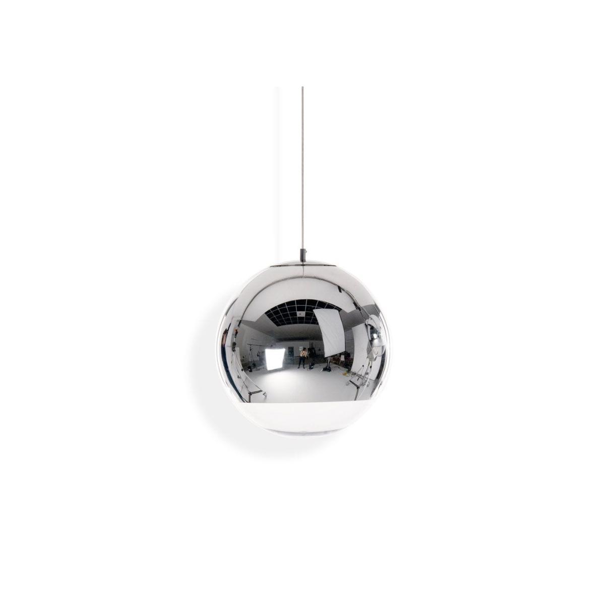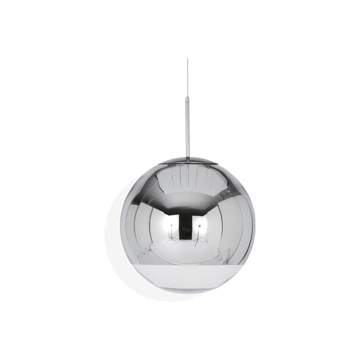 Based on 1960s astronaut helmets, this pendants mirrored effect is created by applying a thin layer of pure metal to the interior of a strong polycarbonate globe. This gives the pendant a reflective shine along its surface, while an exposed band on the base allows light to escape and illuminate the space below. Available in a range of sizes and finishes, this futuristic hanging pendant makes a shimmering decorative feature for contemporary styled interiors.