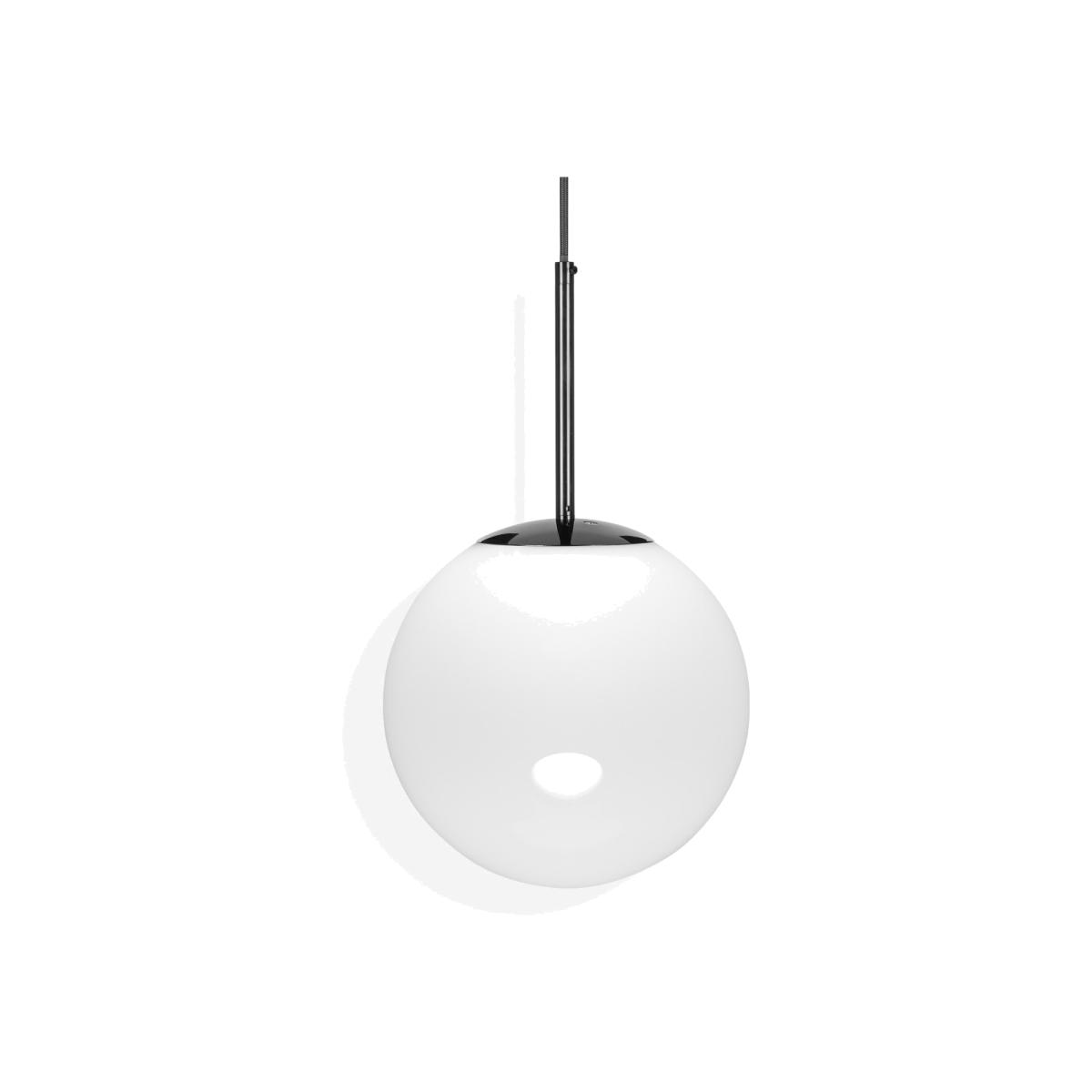 Opal is a translucent ceiling light with a minimal matte black ceiling rose. Made using a high tech manufacturing technique in Germany and designed using our own recipe of opalescent polycarbonate, which results in a satisfyingly ethereal orb. Coupled with our new Tom Dixon LED, the shatter proof Opal pendant emits a soft, diffused and flattering light.