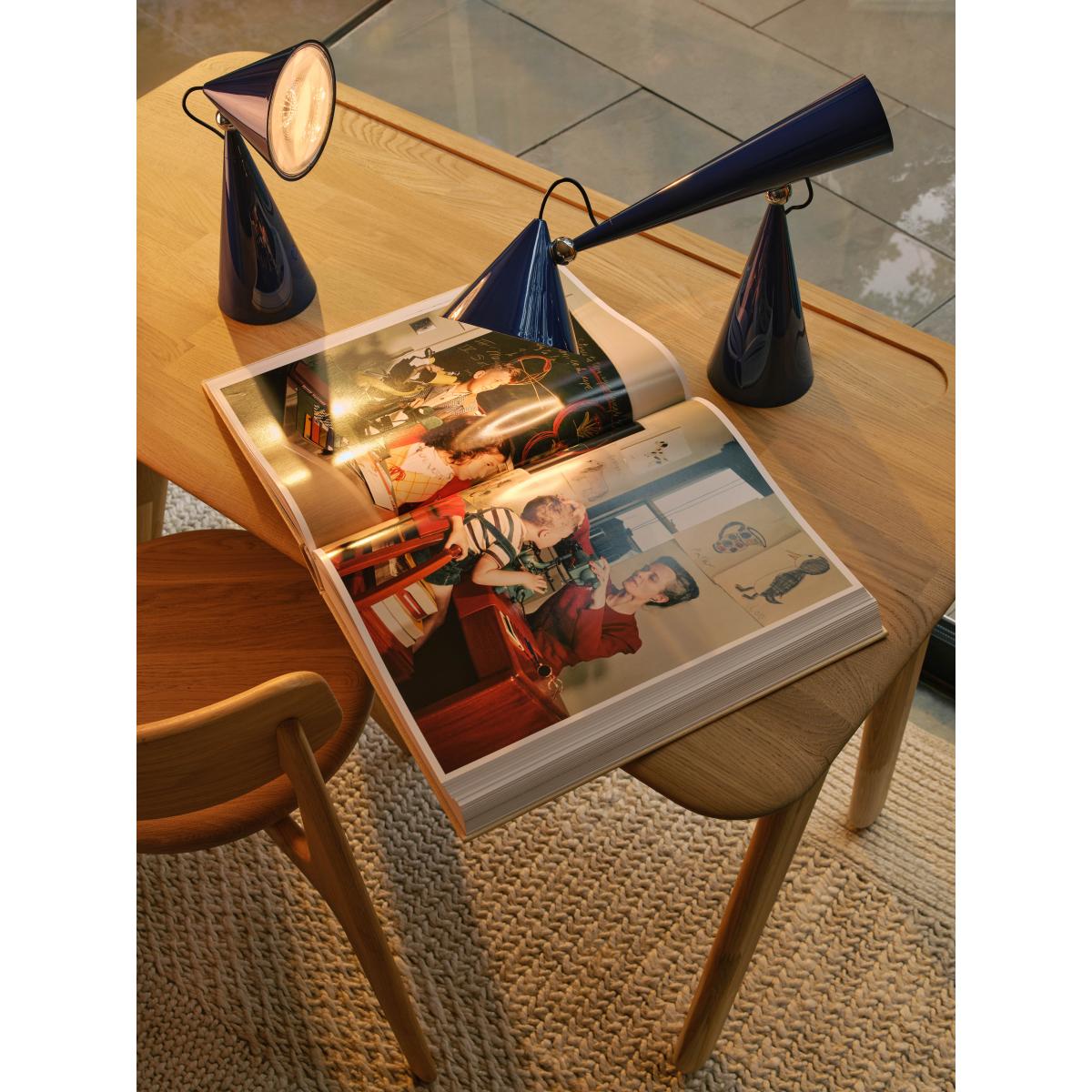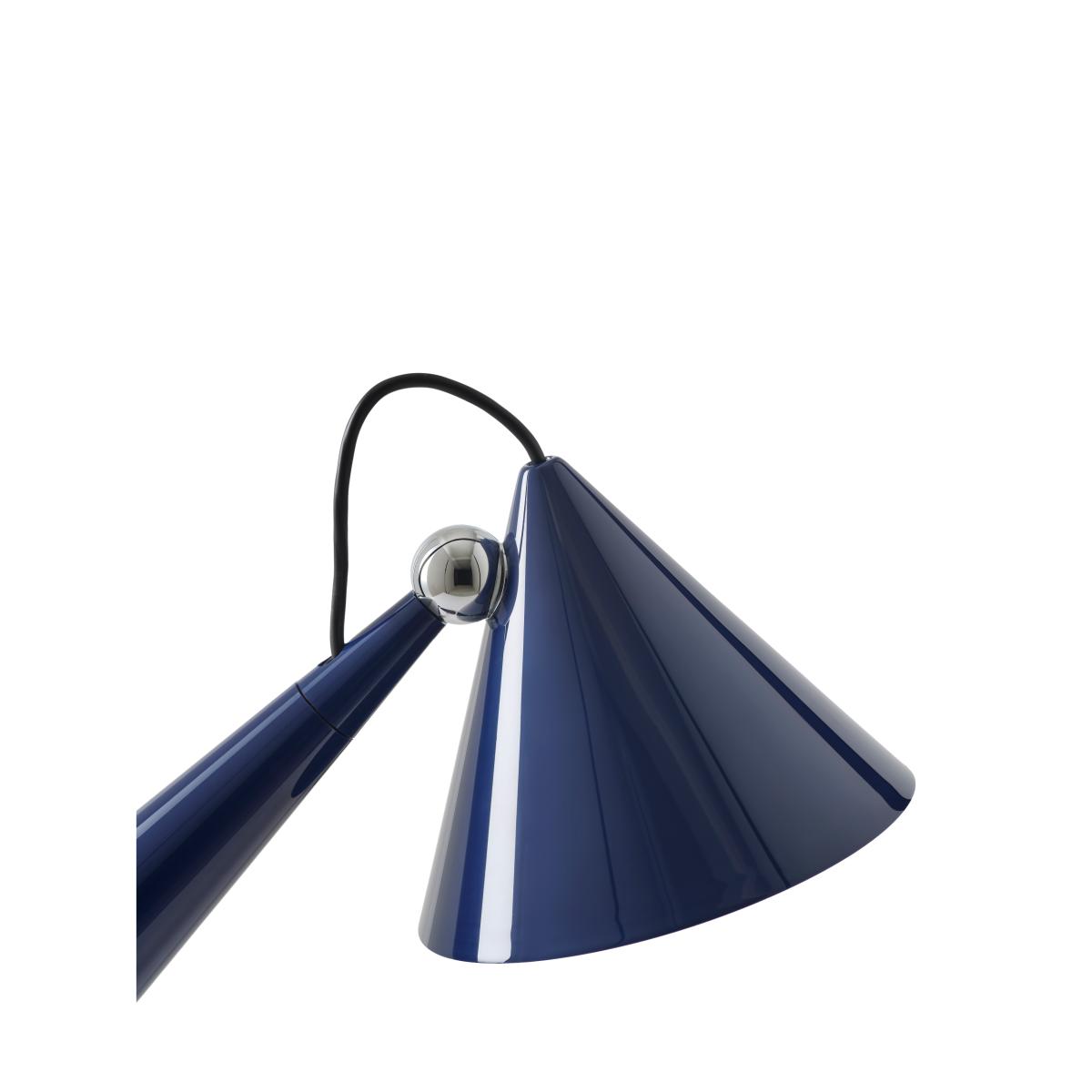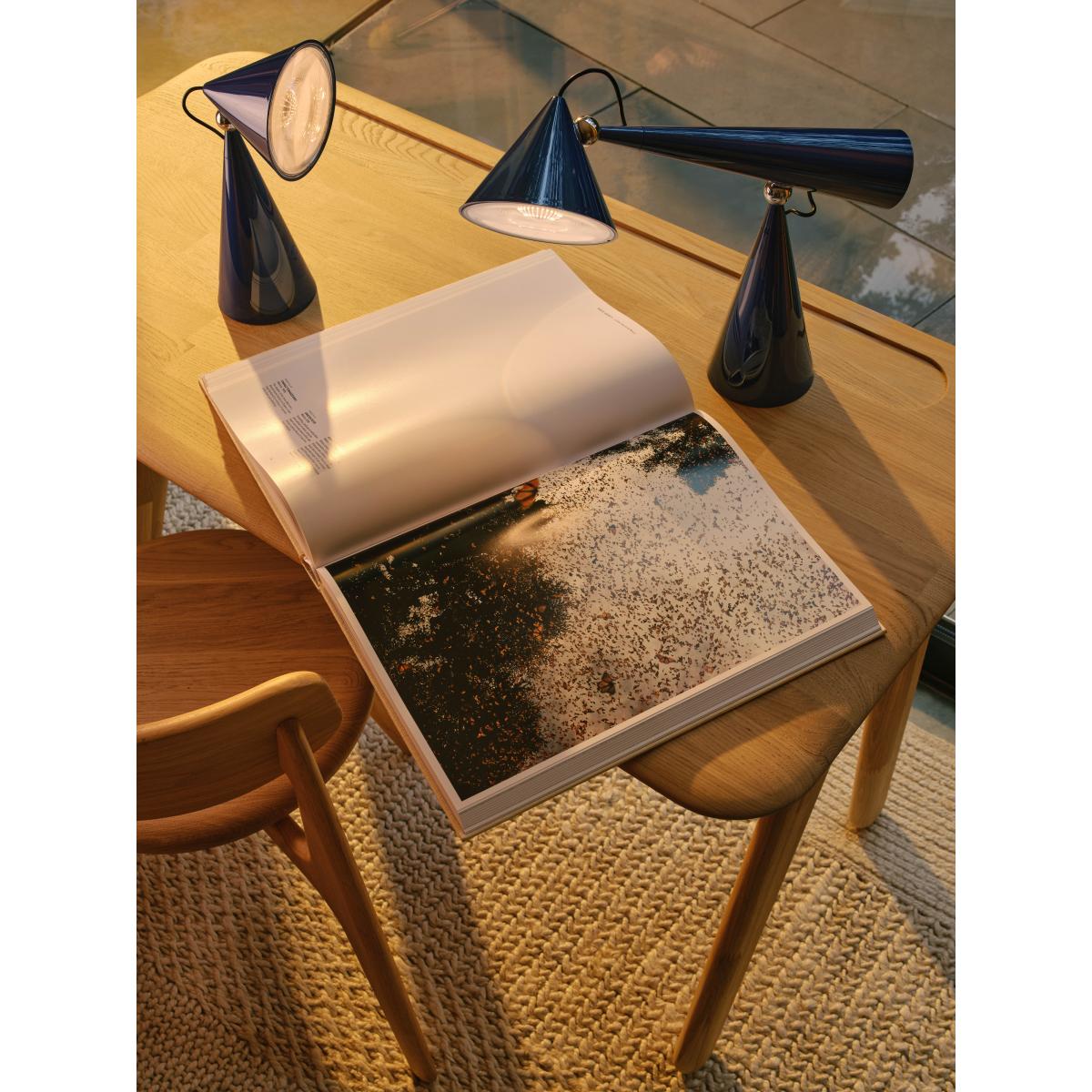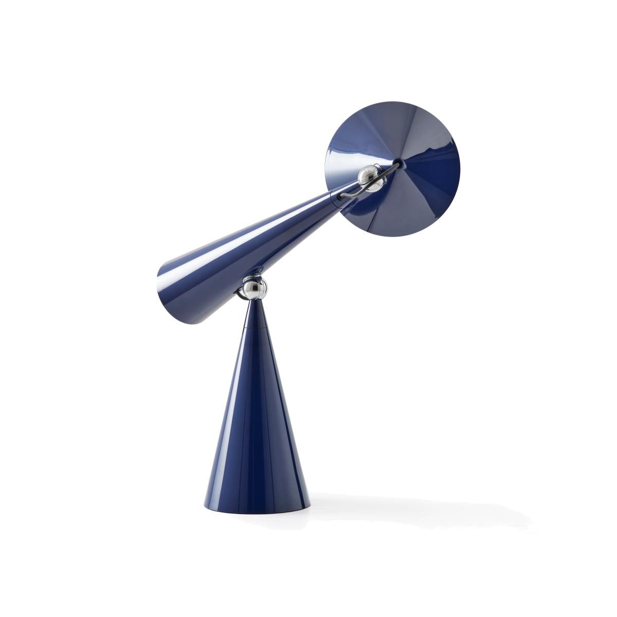I love this table lamp for its bold, sculptural design and striking indigo finish, which can serve as both a functional lighting piece and a statement decor item. It works particularly well in contemporary interiors, especially those with minimalist or modern Scandinavian aesthetics, where its clean lines and confident colour can add a pop of colour without overwhelming the space. For practical styling, it’s best placed on a side table, desk, or console where its geometric shape can be appreciated up close. Pair it with neutral or complementary tones to highlight its colour and form, or use it alongside other metallic accessories for a cohesive, sophisticated look.