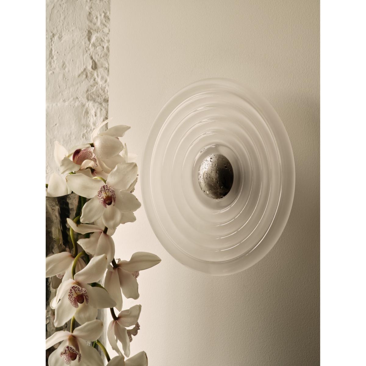 Press Surface wall lamp large LED 35 cm from Tom Dixon is an impressive light source made from industrially pressed thick glass. The lamp's ribbed glass diffuses the light and creates linear patterns, while the curved metal dome adds an elegant look. It is IP45 rated, making it suitable for both indoor and outdoor use. Equipped with a 2700. K LED ring for warm light, and a 3000. K LED ring is also available for cooler light.