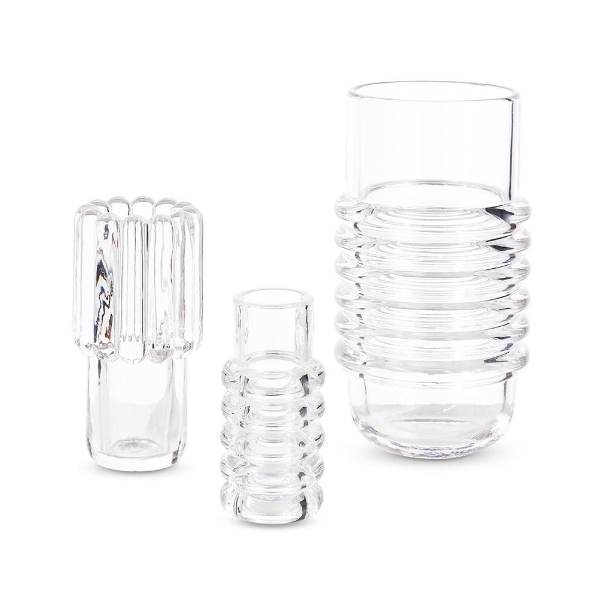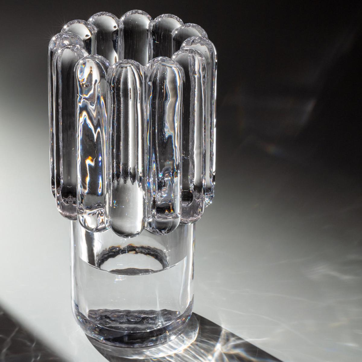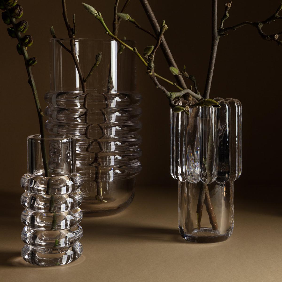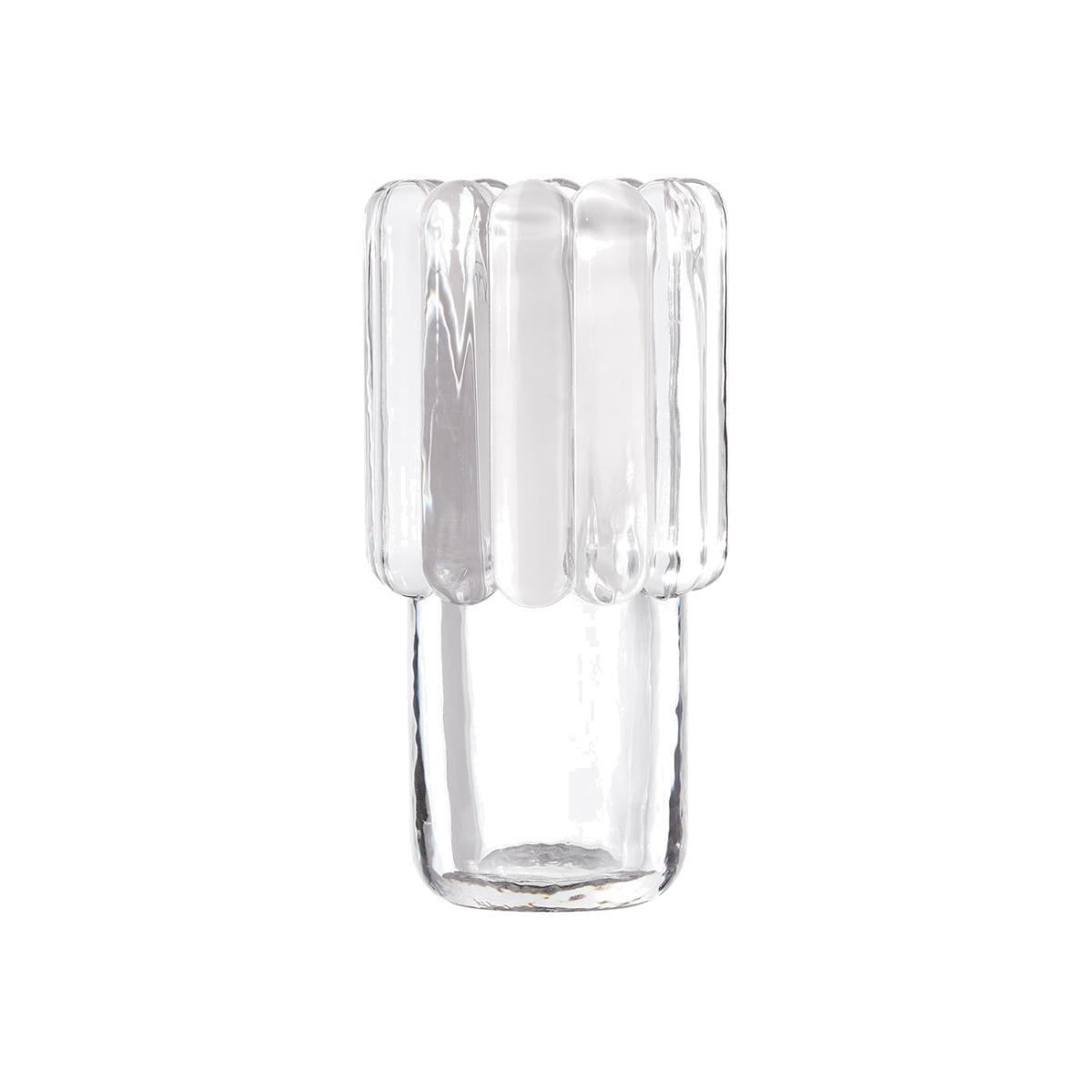 This Press vase from Tom Dixon is an essential addition to your design-conscious home. Made from chunky coils of pure and clear transparent glass, it is made by dropping big drops of molten glass at 1,200 degrees centigrade into two or three part-iron moulds to create its unique yet familiar silhouette. Designed to catch and refract the light, there are more complementing designs available in the Press collection.