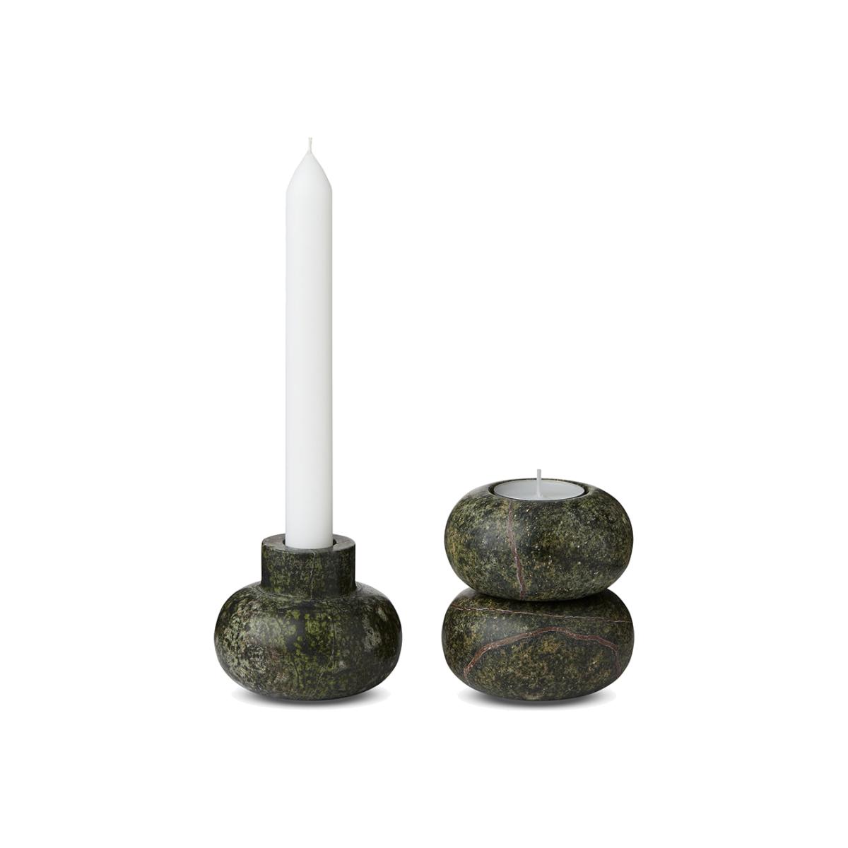 Add architectural flair to the home with this set of 3 Rock stacking candle holders from Tom Dixon. In rich forest green, these tealight holders have been hand crafted using single pieces of natural marble. Designed to be displayed separately or stacked together, you can create your own look with ease. Part of the Rock collection, the pieces are interactive, playful and stackable to add architectural elegance to the table. Key features: * Set of 3 tealight holders * Material: marble * Dimensions: H8xØ12.8cm (when stacked) * Stackable & reconfigurable candle holders * Carved from natural marble * In a deep forest green shade * Designed to holder taper candles or tealights * Can be displayed separately or stacked together * Handmade on a lathe * Clean with a soft dry cloth