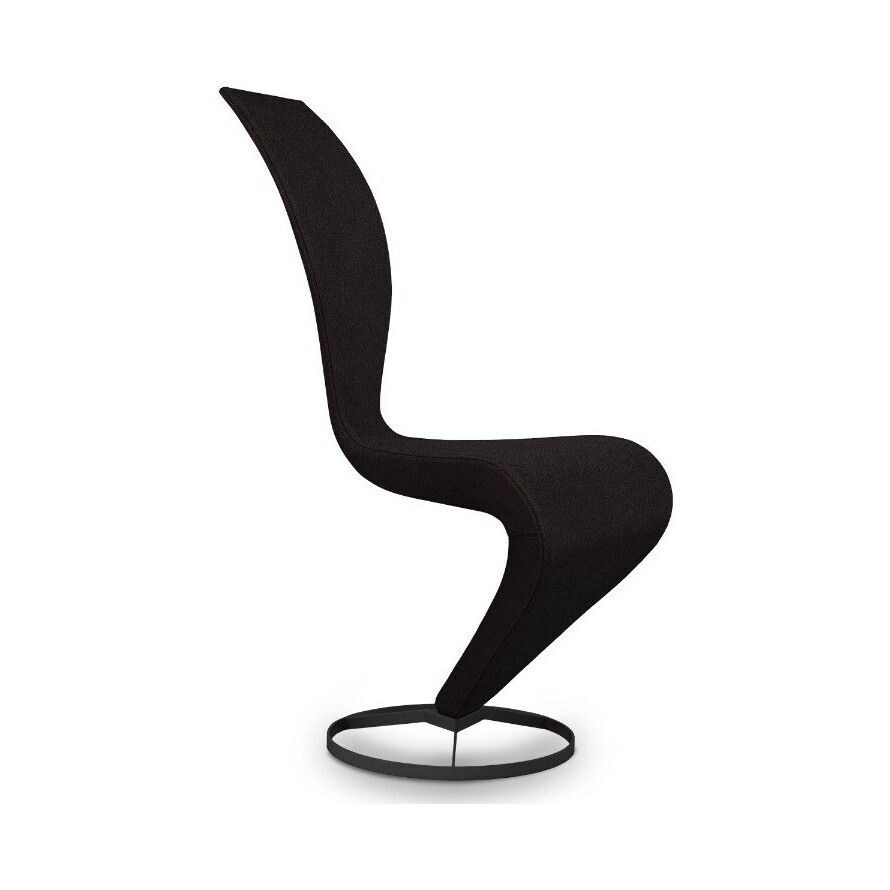 I love this chair for its sculptural yet functional design, making it a real statement piece in any dining setting. The S-Chair works well in contemporary interiors, especially those with minimalist or industrial accents, thanks to its bold form and sleek black finish. When styling, consider pairing it with a contrasting wooden table or layered textures to soften the look, or use a pop of colour through accessories to highlight its modern aesthetic. Practical tips include opting for simple upholstery or a subtle fabric to keep the focus on its striking silhouette, and ensure it's paired with a table height that complements its proportions for comfortable seating.