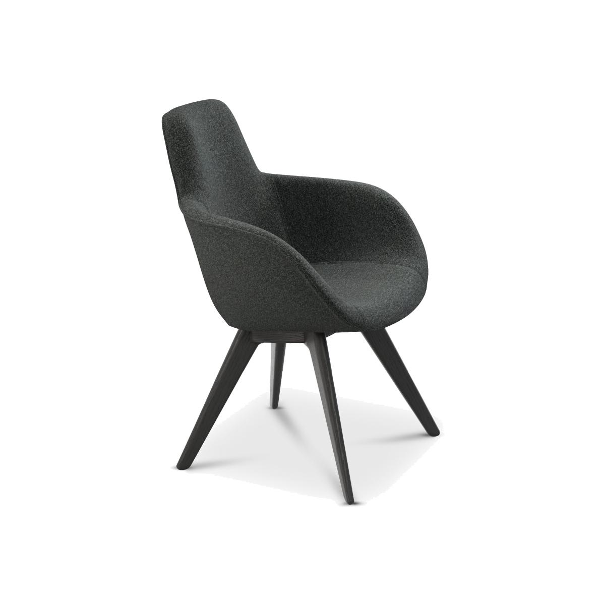 Re-designed in 2018 for maximum comfort and visual impact, Scoop was originally developed for the Royal Academy of Arts Restaurant in London. This dining chair is upholstered in Wool and available in a variety of colours and leg options. Engineered from new foam moulded curves, Scoop dining chair hugs the contours of the body.