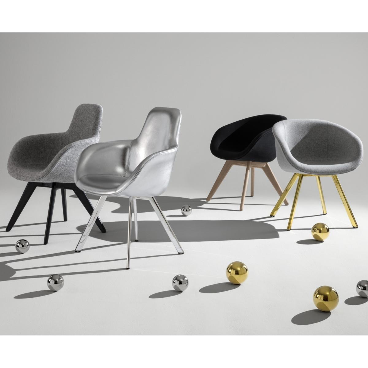 Re-designed in 2018 for maximum comfort and visual impact, Scoop was originally developed for the Royal Academy of Arts Restaurant in London. This dining chair is upholstered in Leather and available in a variety of colours and leg options. Engineered from new foam moulded curves, Scoop dining chair hugs the contours of the body.