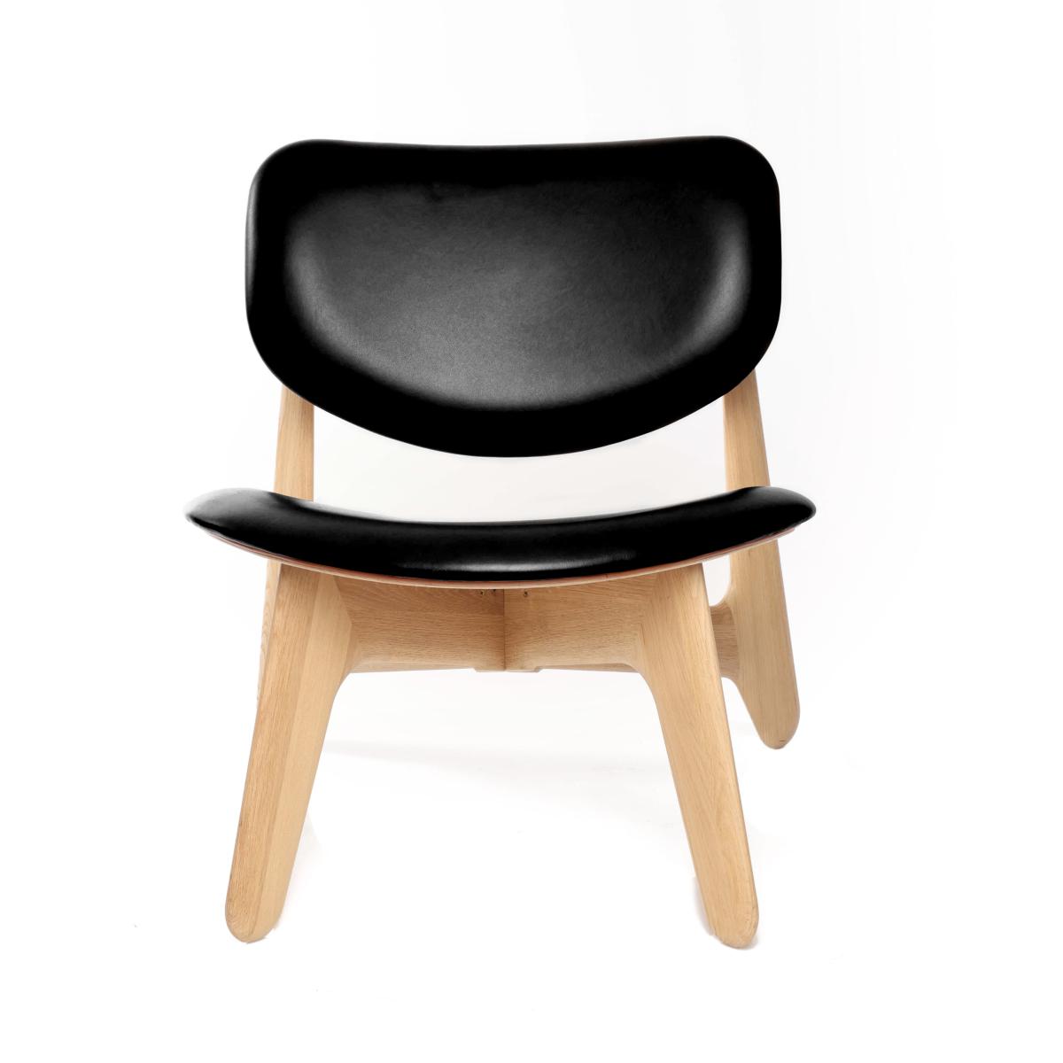 Tom Dixon Slab lounge chair upholstered seat Natural oak-black leather