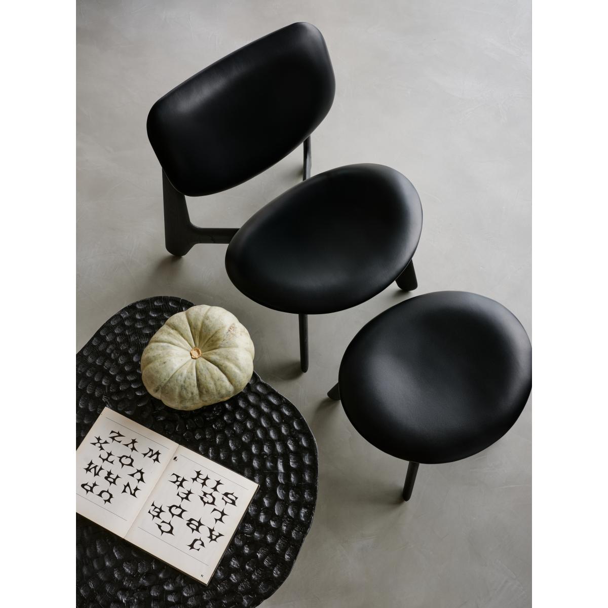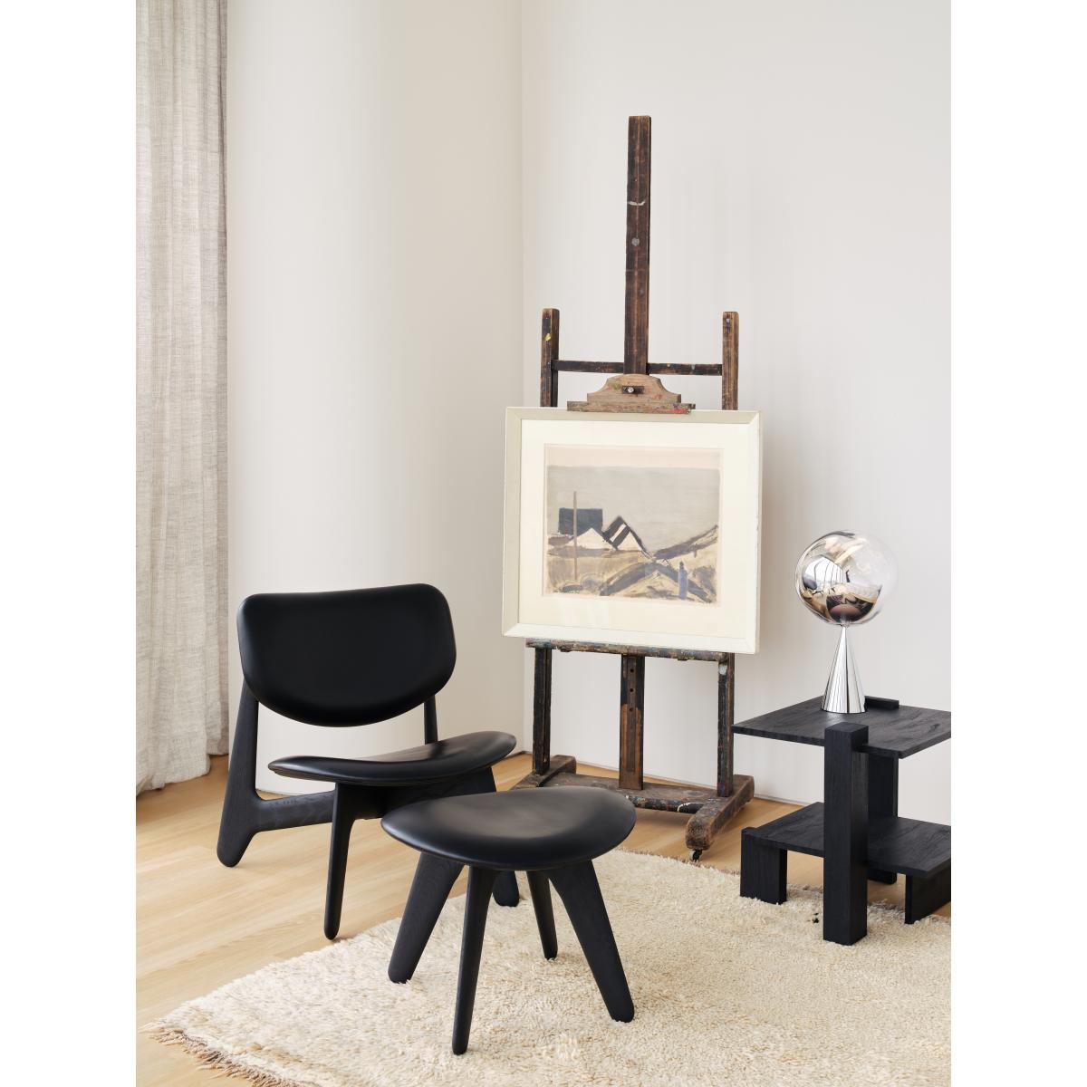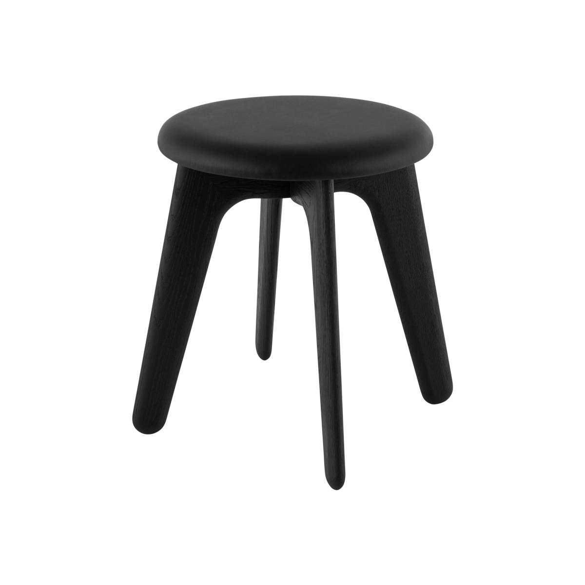 The black finished stool here is a versatile piece that works well in both contemporary and minimalist interiors. Its compact size and simple silhouette make it ideal as a footrest, side table, or additional seating without overwhelming a space. The blend of black ash with leather adds a tactile, sophisticated touch that elevates its aesthetic. For styling, consider pairing it with neutral-toned sofas or placing it alongside other wooden or leather accents to create a cohesive look. Practical tips include using it as a support for trays or as a comfortable spot for quick seating in living rooms or bedrooms. Its understated yet modern design ensures it complements a variety of decor styles seamlessly.