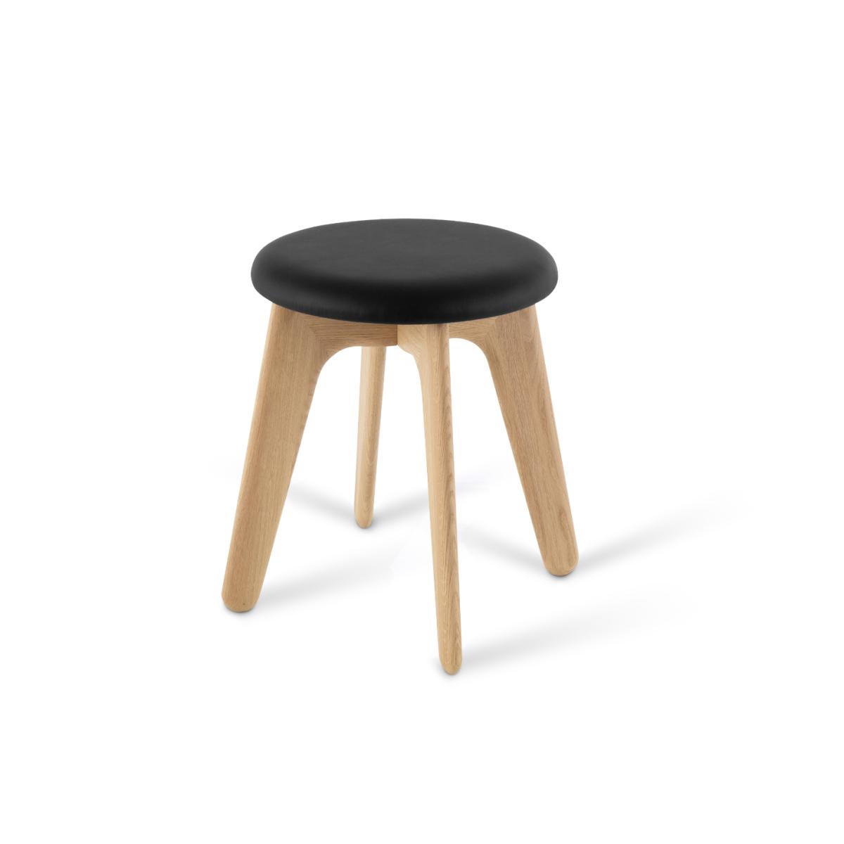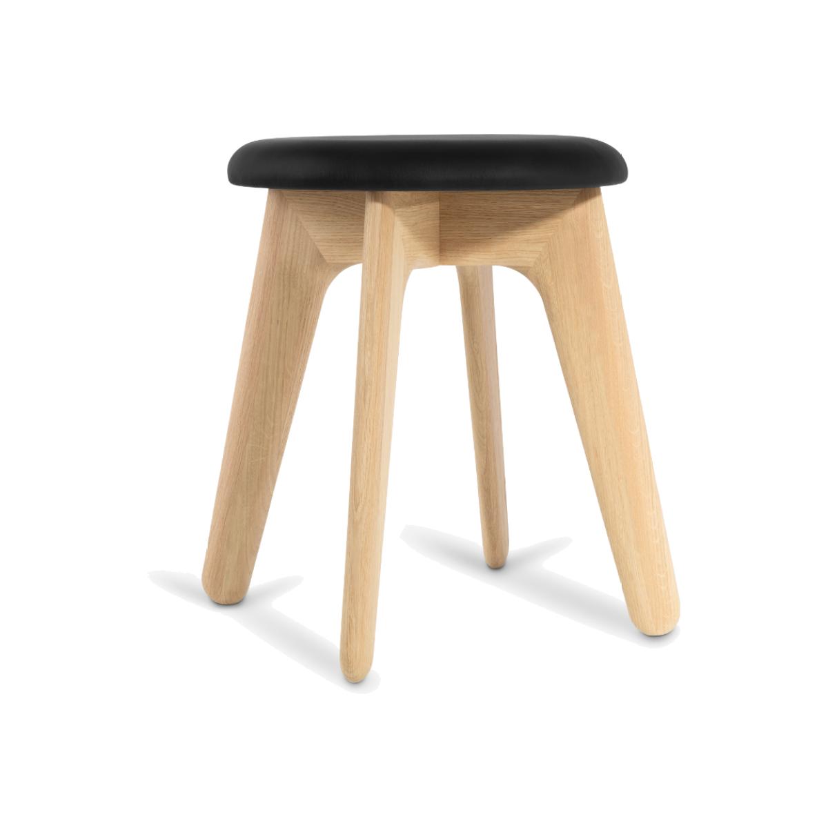 Slab is made from solid oak, sourced from sustainably-managed forests. The surface of the wood is deeply brushed to expose its natural grain. Slab Stool comes with leather seat or unupholstered.
