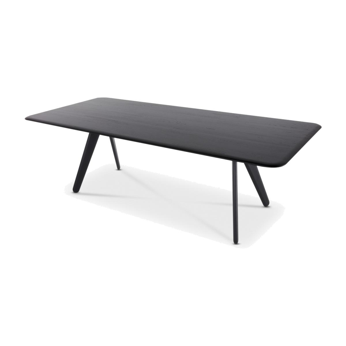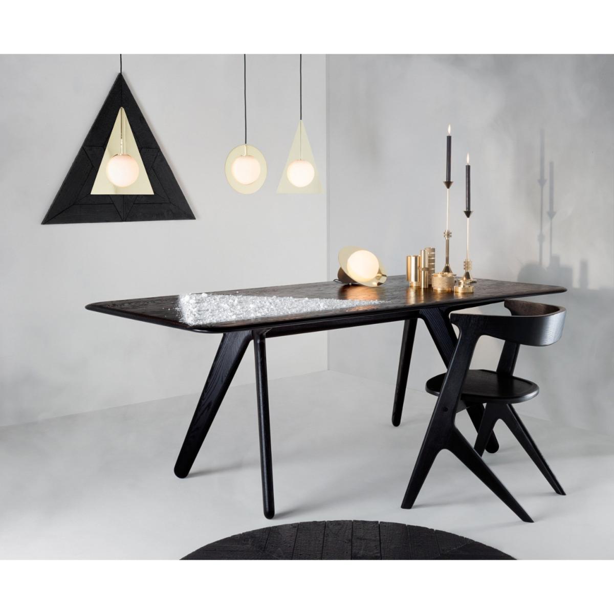 I love the slab table for its pared-back silhouette and generous proportions - it sits equally well in a minimalist penthouse living room or a contemporary country kitchen. The black ash finish works as a strong anchor in schemes that feature lighter materials, such as pale walls, stone floors or timber beams. Keep styling simple: mix sculptural chairs and a low bench, add a linen runner or a couple of muted-ceramic vases, and position a statement pendant light at the centre to highlight the table’s clean lines. A textured rug underneath and a shot of greenery in clear glass can soften the overall look without detracting from its calm, architectural presence.