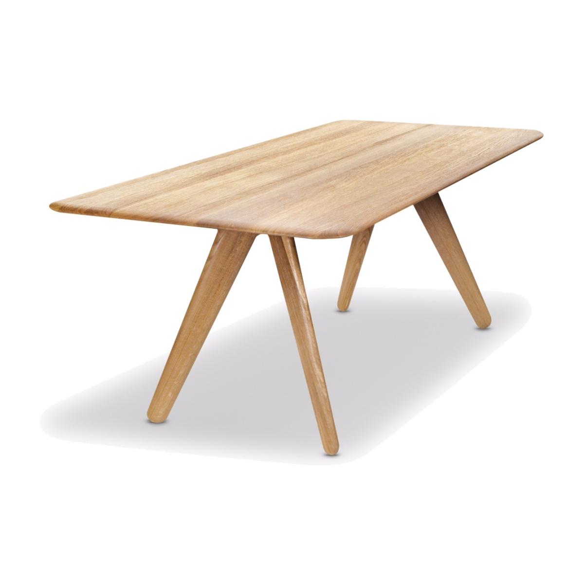 I’m a fan of the slab table for its solid oak grain and pared-back silhouette - it feels right at home in a Scandi-inspired or Japandi kitchen-diner, but equally fresh in a light, open-plan living area. To style it, keep accessories minimal: a simple linen runner down the centre, a cluster of cool metal or glass vases, and perhaps a low-profile steel pendant above. Mix in seating - mismatched chairs or a soft bench - to soften the lines, then anchor the whole look with a low-pile jute rug underneath.