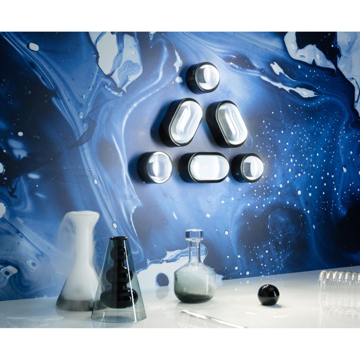 Framed in a plated stainless-steel surround, Spot Surface is a massively thick glass lens designed to refract the light of integrated LEDs. Spot is IP44 rated as a wall light.