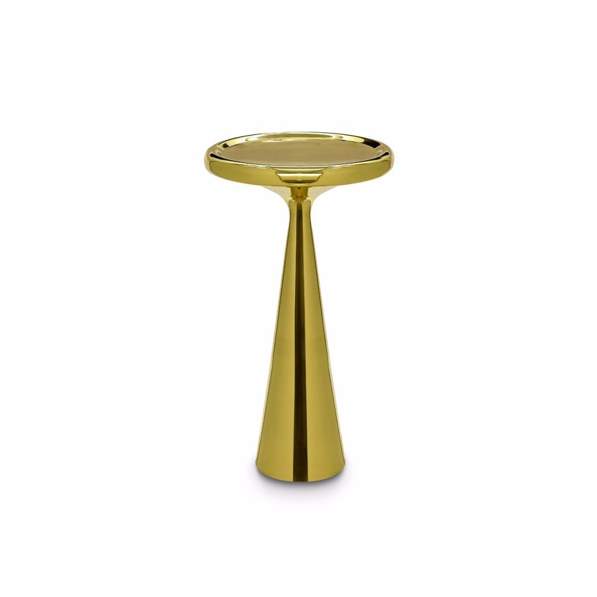 I love the tall brass Spun Table as a statement piece that brings a modern, sculptural feel to a variety of interiors. Its reflective brass finish and unique spun design make it especially effective in contemporary or eclectic schemes, where it can serve as both a functional surface and a decorative highlight. It works well beside high-back armchairs or within a cluster of smaller tables to create visual interest. For styling tips, pair it with minimalist accessories or sleek lighting to enhance its shine, and consider it as a base for a statement lamp or a piece of art to elevate your space effortlessly. Its adaptable size and eye-catching finish make it perfect for lounge areas, bedrooms, or even as a side table in a luxury hallway.