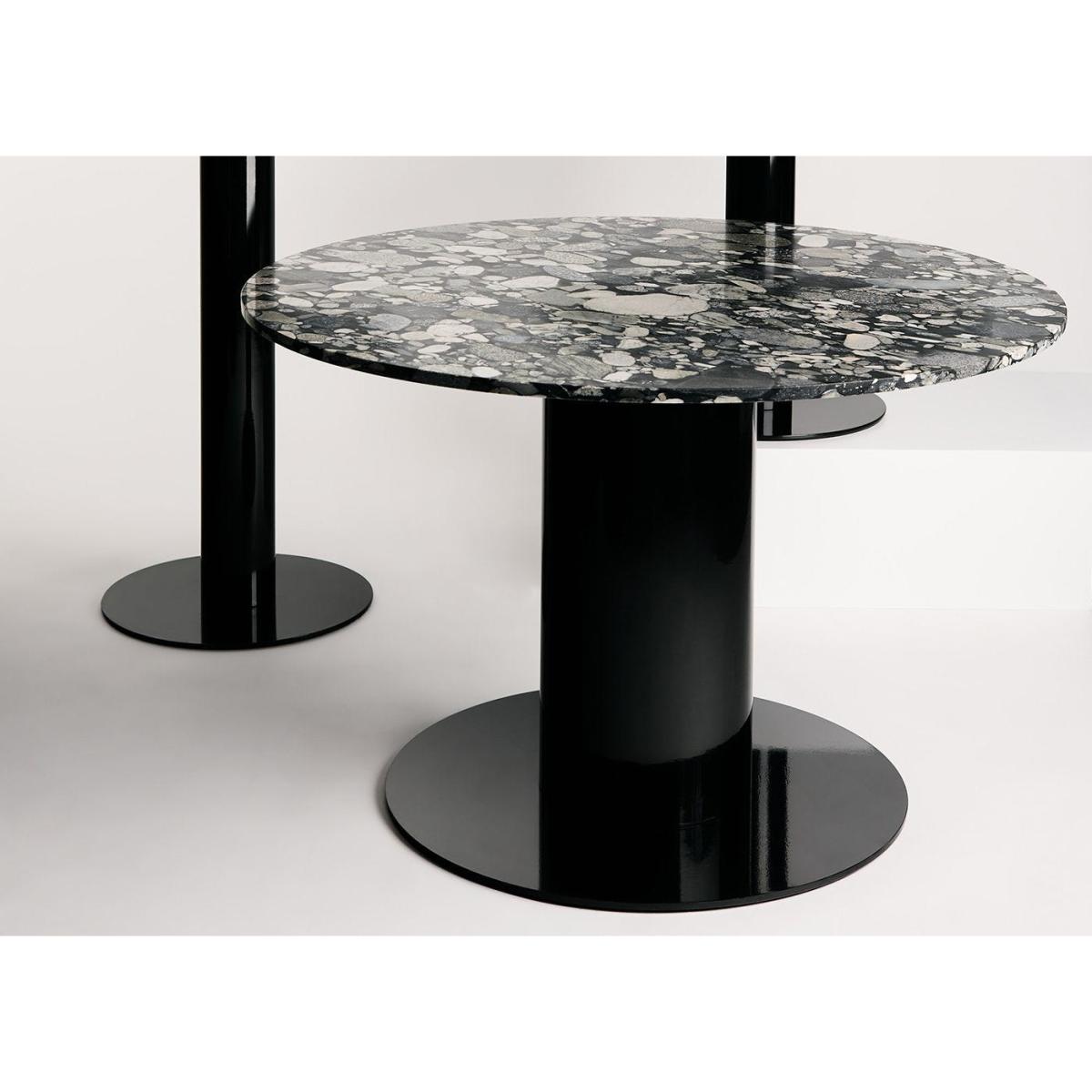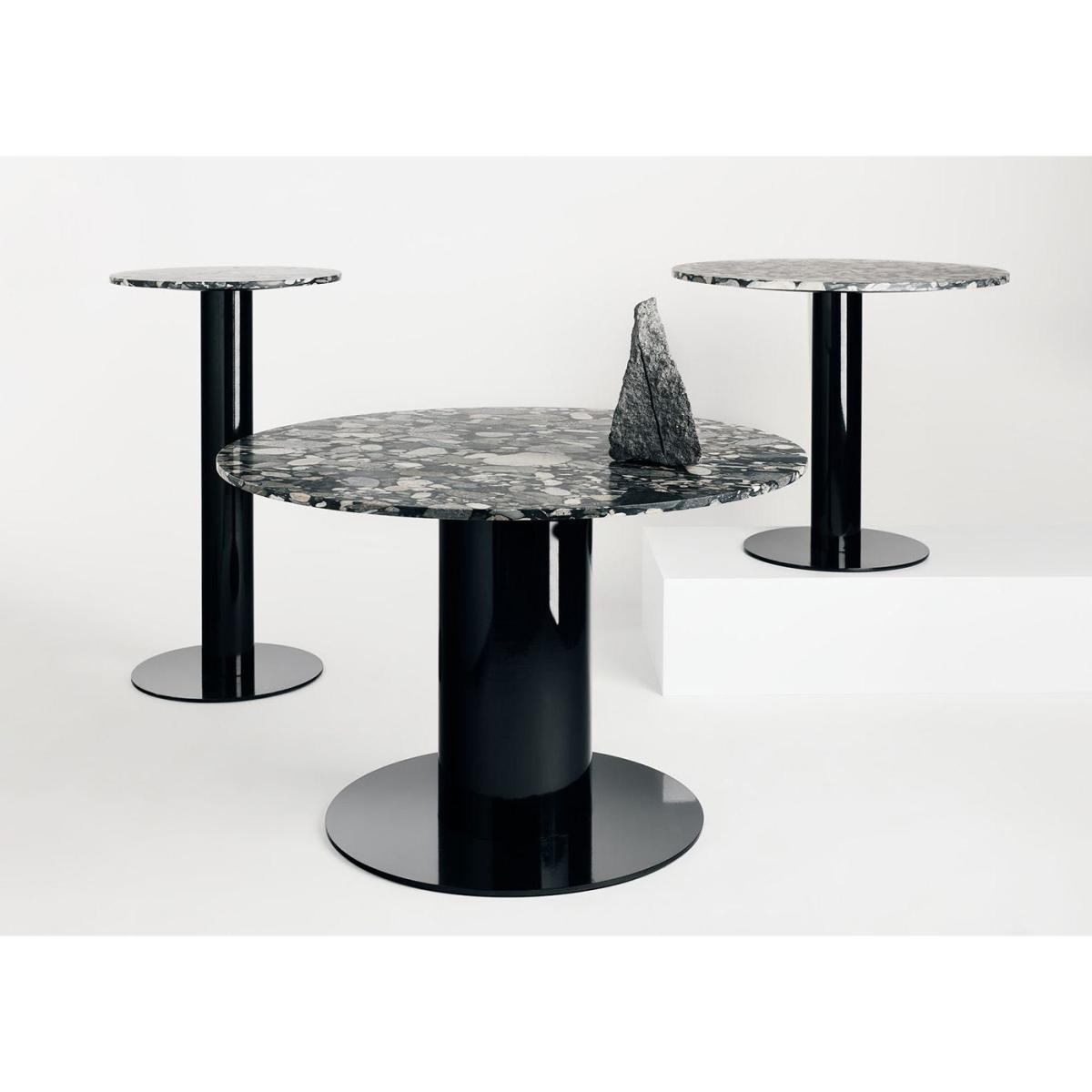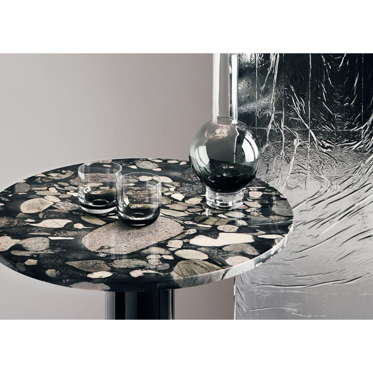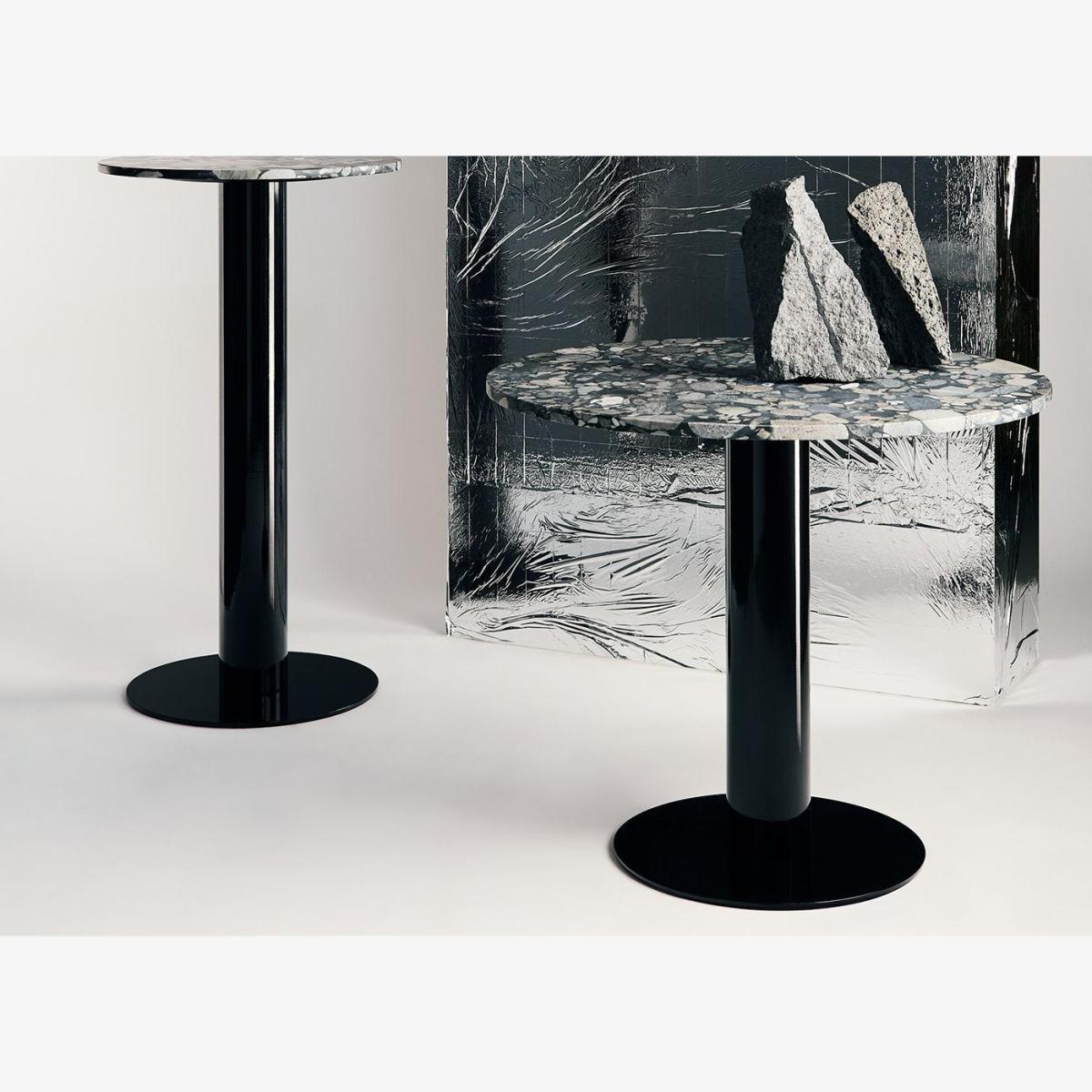 The Stone Circle Table by Tom Dixon brings crisp geometry and timeless materials together in a striking form. Featuring a glossy black steel base and a naturally patterned marble top sourced from China’s Shandong and Fujian provinces, it’s a compact yet sculptural piece with geological depth and elegance.