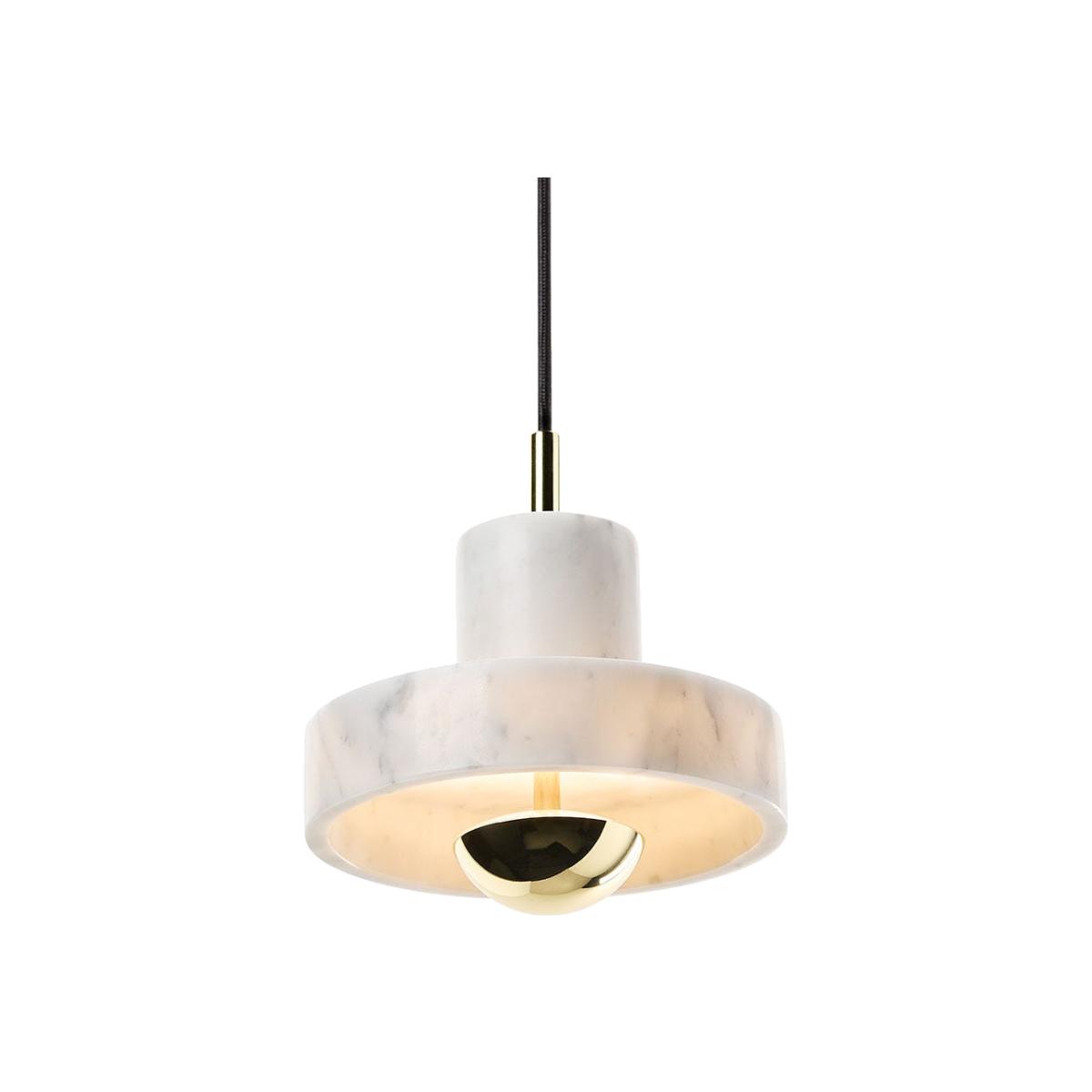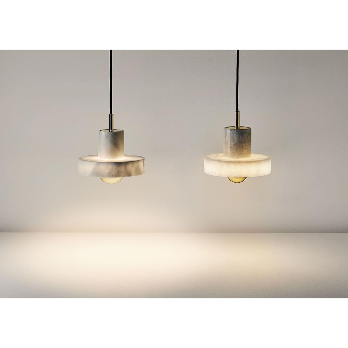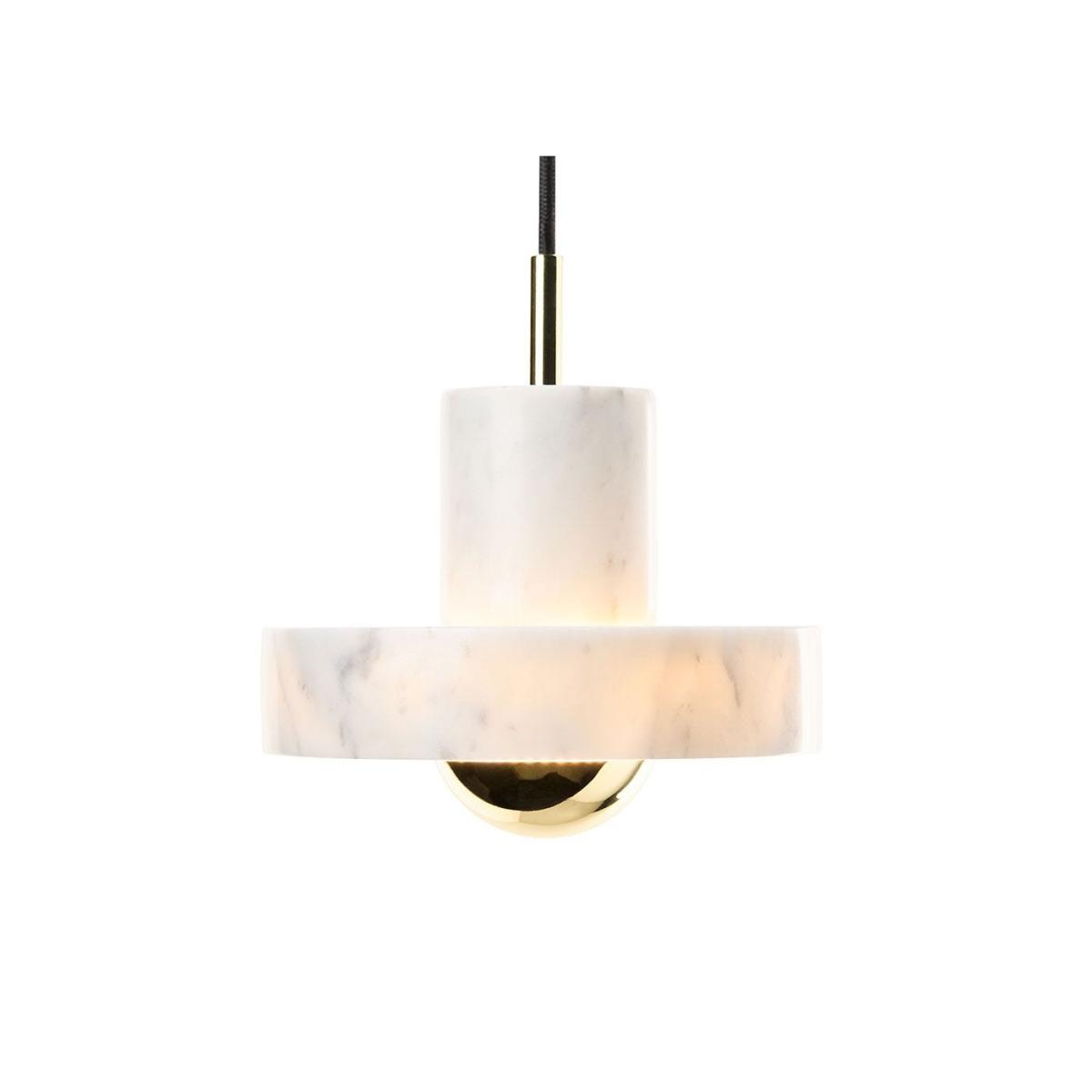 E intricate patterns found within white marble have transfixed designers and makers for centuries. Tough yet tactile, robust with a unique veined design, this opulent pendant is carved from semi-precious Morwad marble into a collection of ringed cylinders that gently interlink.