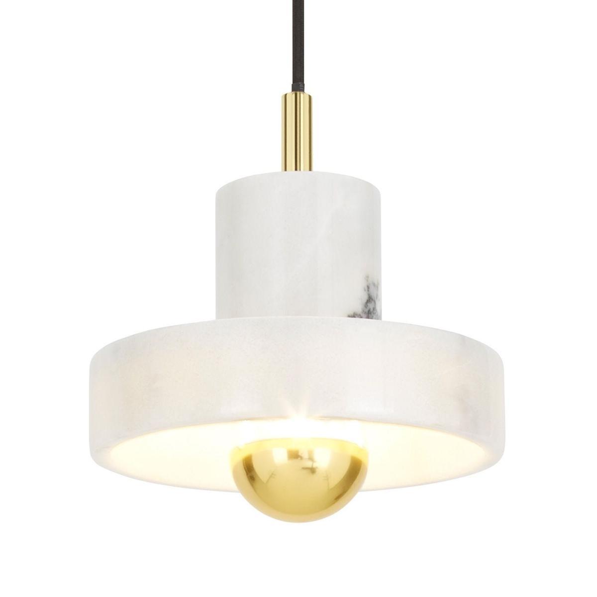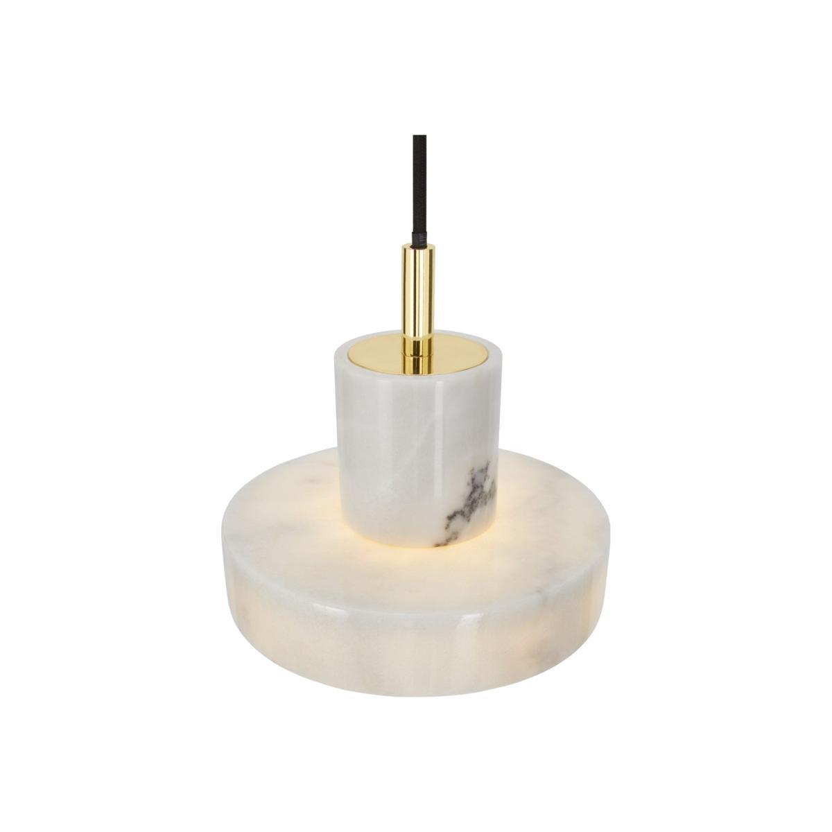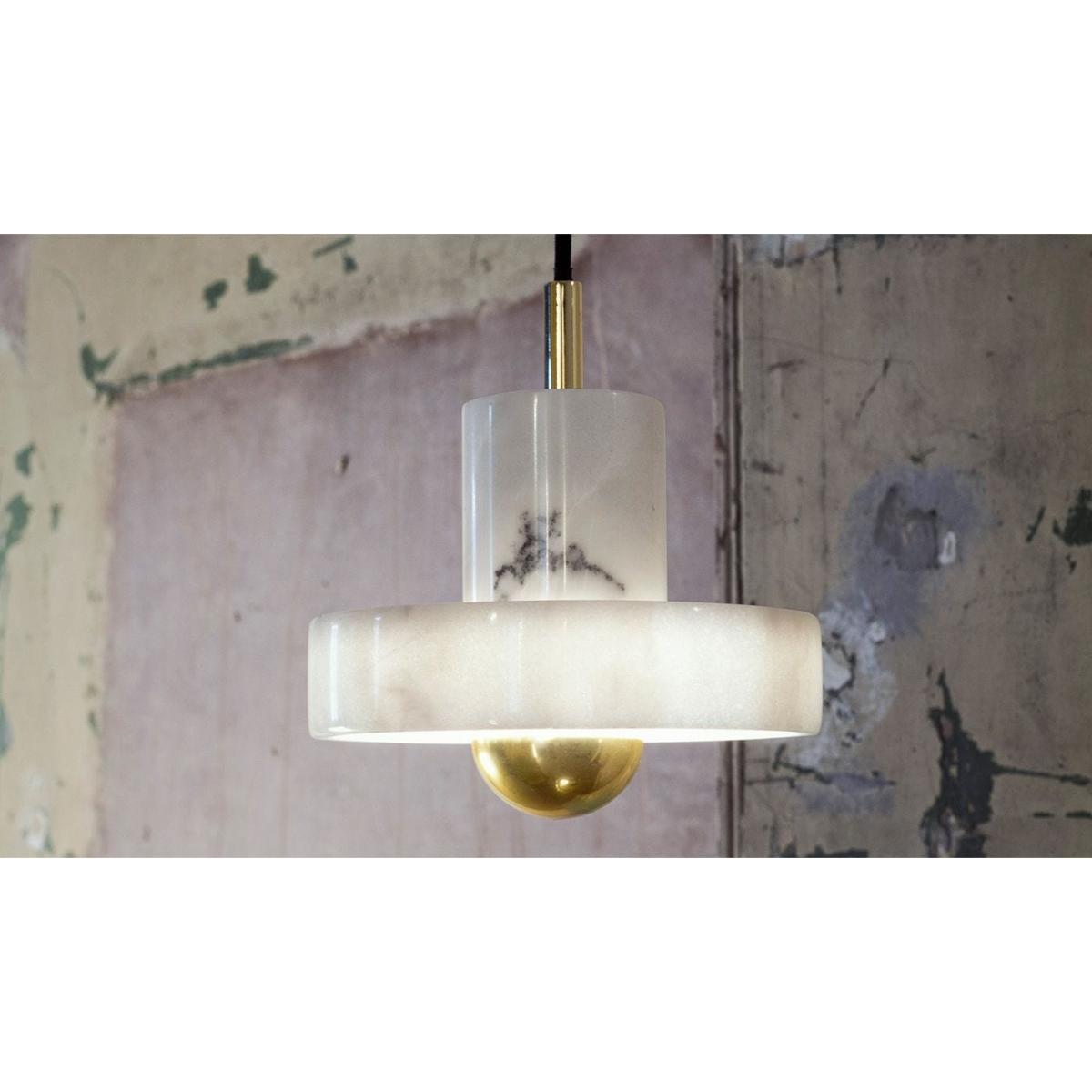The intricate patterns found within white marble have transfixed designers and makers for centuries. Tough yet tactile, robust with a unique veined design, this opulent pendant is carved from semi-precious Morwad marble into a collection of ringed cylinders that gently interlink.