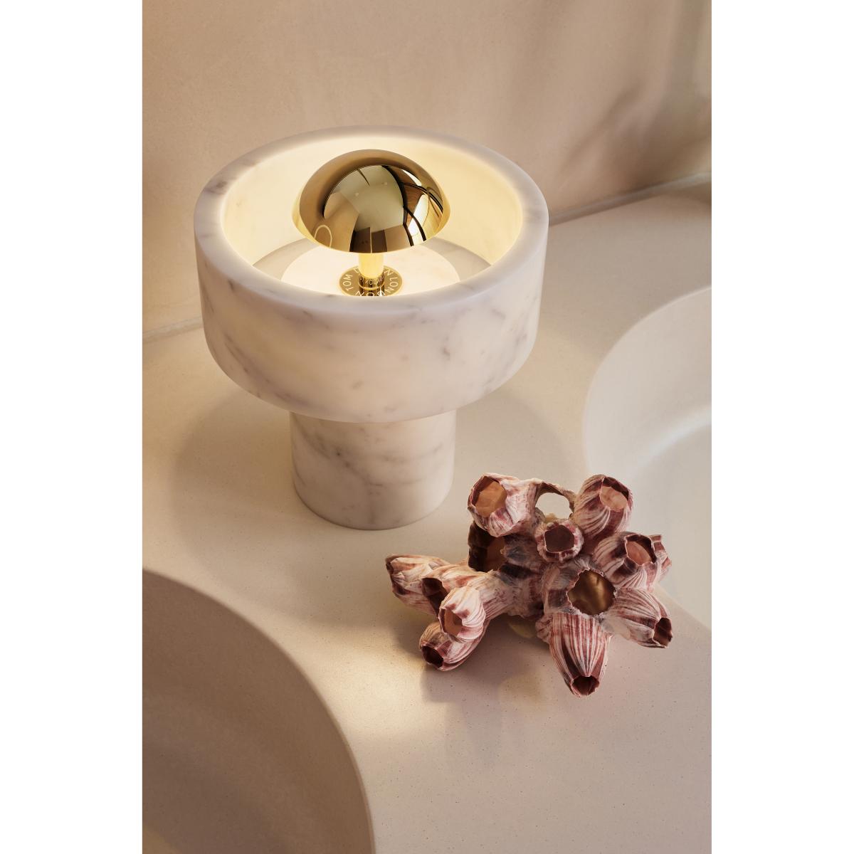 I love this stone lamp for its clean, modern aesthetic combined with a natural material that adds texture to any space. Its compact size makes it ideal for side tables, desks, or bedside trays, where it can serve as both a functional light source and a decorative accent. The marble base and gold dome give it a luxe yet understated vibe, perfect for contemporary or minimal interiors, but it can also add a touch of sophistication to more eclectic settings. Style tip: pair it with other natural stone or metallic accessories for a cohesive look, and use it to create cosy, intimate lighting in darker corners of the room.