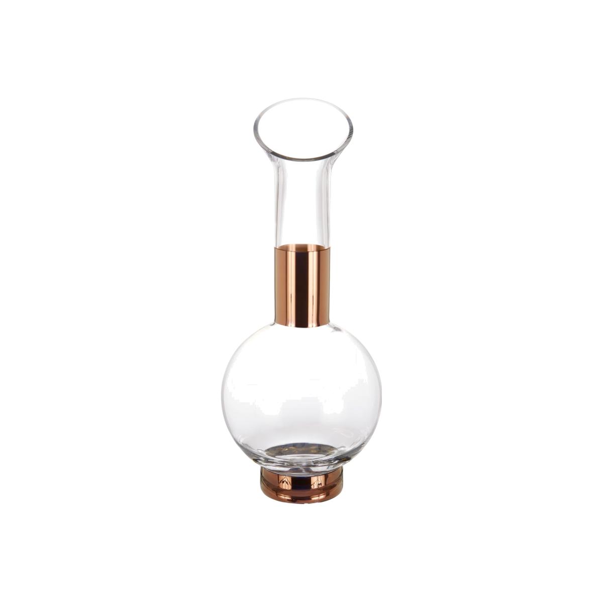 I love this vase for its clean, modern silhouette with a subtle industrial edge, making it quite versatile in contemporary interiors. It works particularly well in minimalist spaces or as a statement piece on a sideboard or coffee table. To style it effectively, consider pairing with simple, open bouquets or bare stems for a striking yet understated look. It also lends itself to playful arrangements of grasses or small florals, and its transparent glass adds a lightness that complements both neutral and colour-rich schemes. For best impact, position it where the light can highlight its sleek lines and subtle metallic accents.